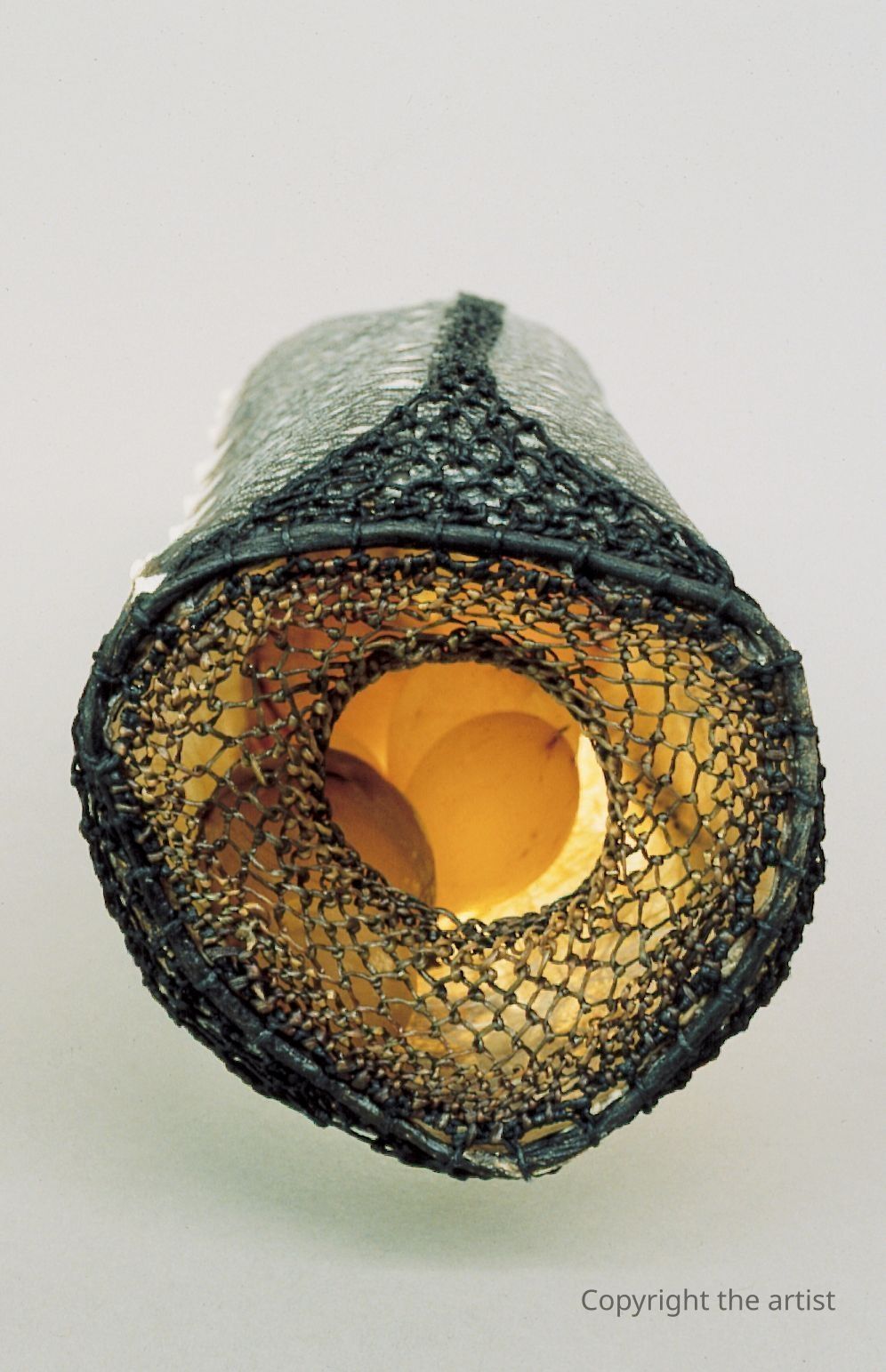 sturgeon skin, waxed linen, bull kelp and Japanese rice paper