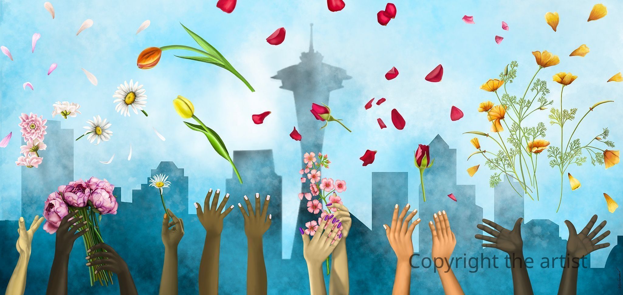 Commissioned by Seattle Storm initiative Force4Change and Uptown Alliance produced by Urban Artworks, located at W Mercer St. and 1st Ave W across the street from the Safeway in Seattle’s Uptown Neighborhood