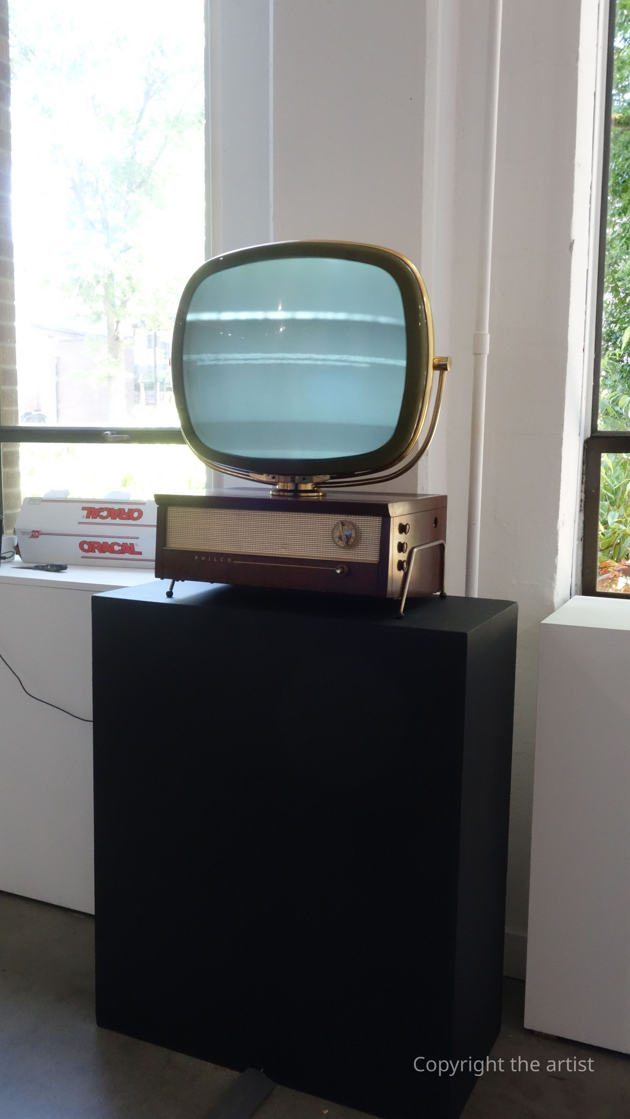 ‘HORIZON” a videotape work created in 1974 at the University of Washington. Originally on videotape, this work was digitized onto DVD and shown on 2 different monitor/televisions. Note Type