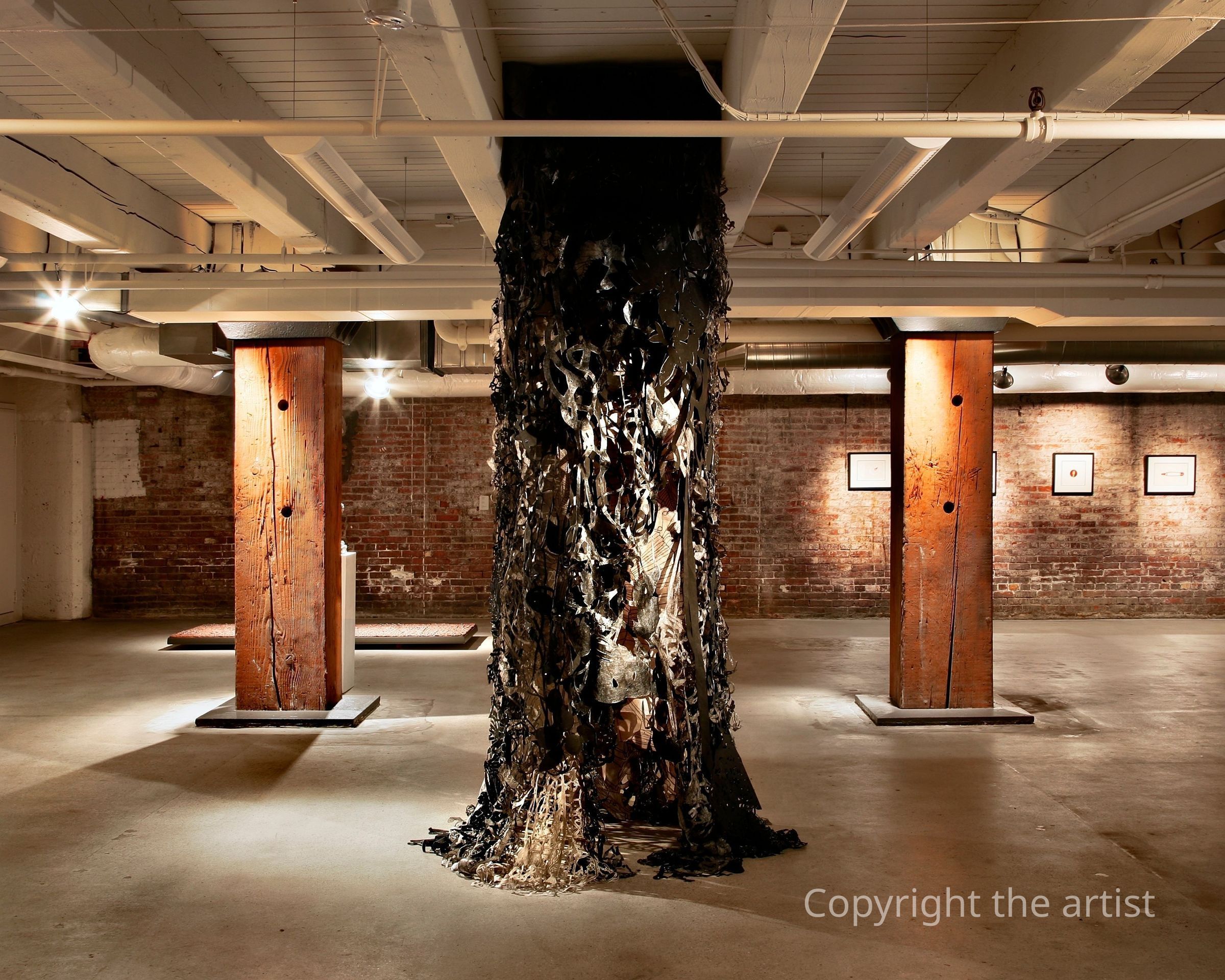 acrylic treated spun polyester, ink, natural dyes, paint and pins