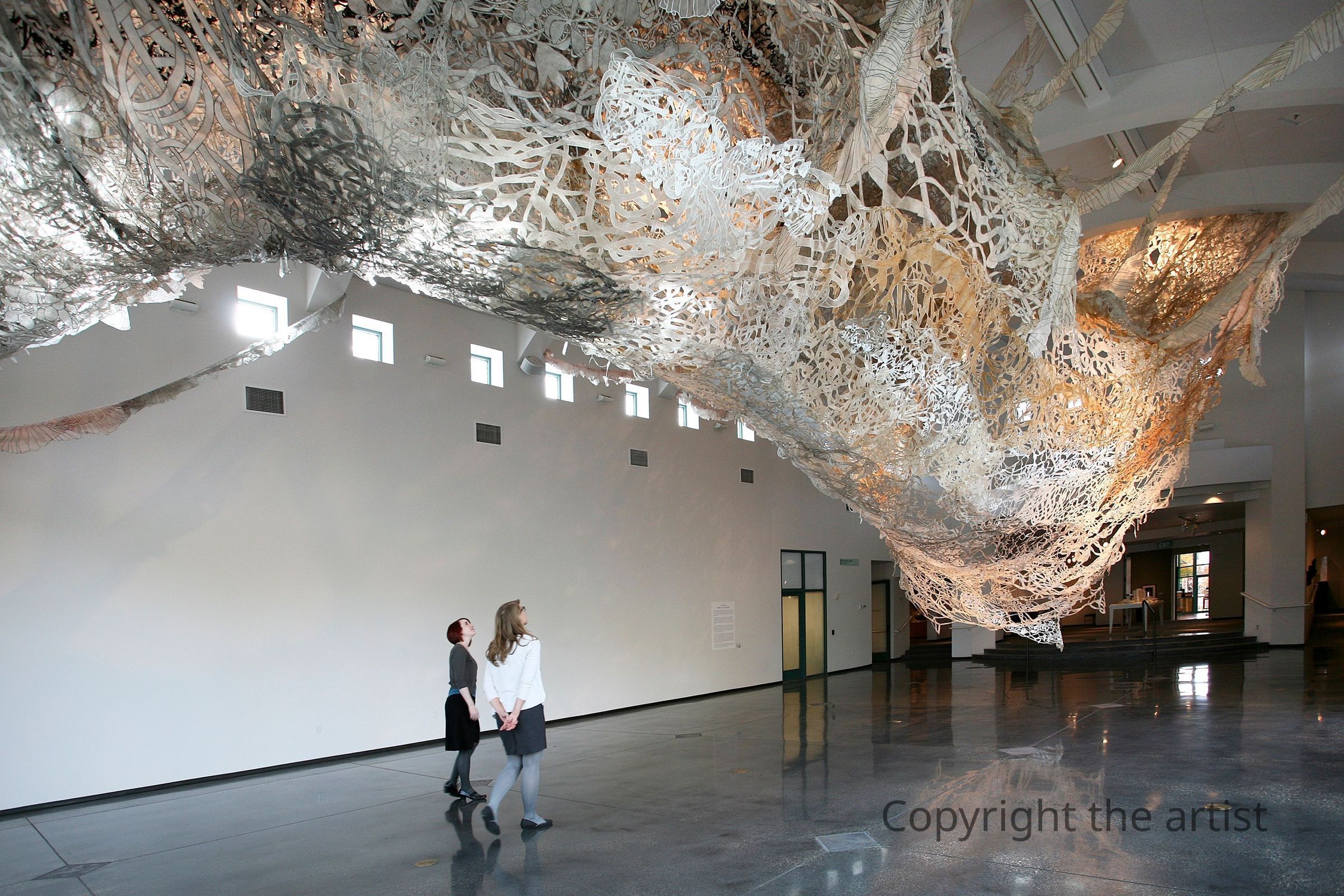 acrylic treated spun polyester, ink, natural dyes, paint and pins