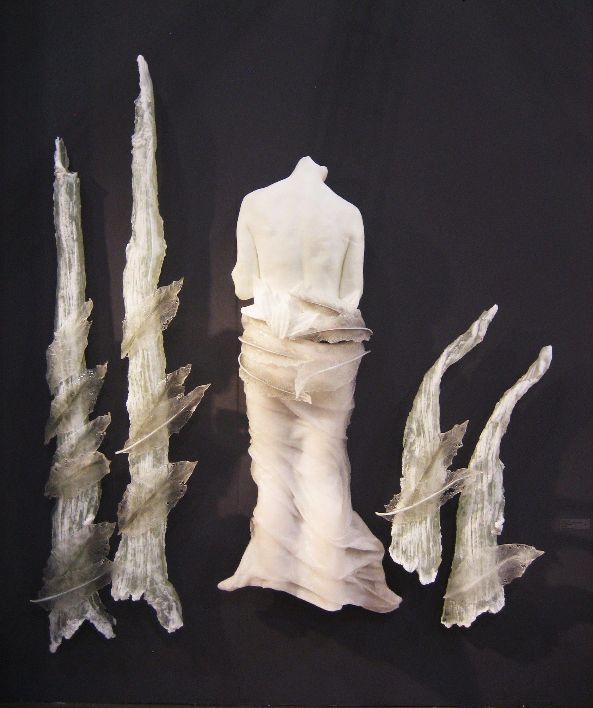 artwork consists of wall mounted brackets which hang cast glass. Surrounding glass landscape trees can be adapted according to space.Note Type