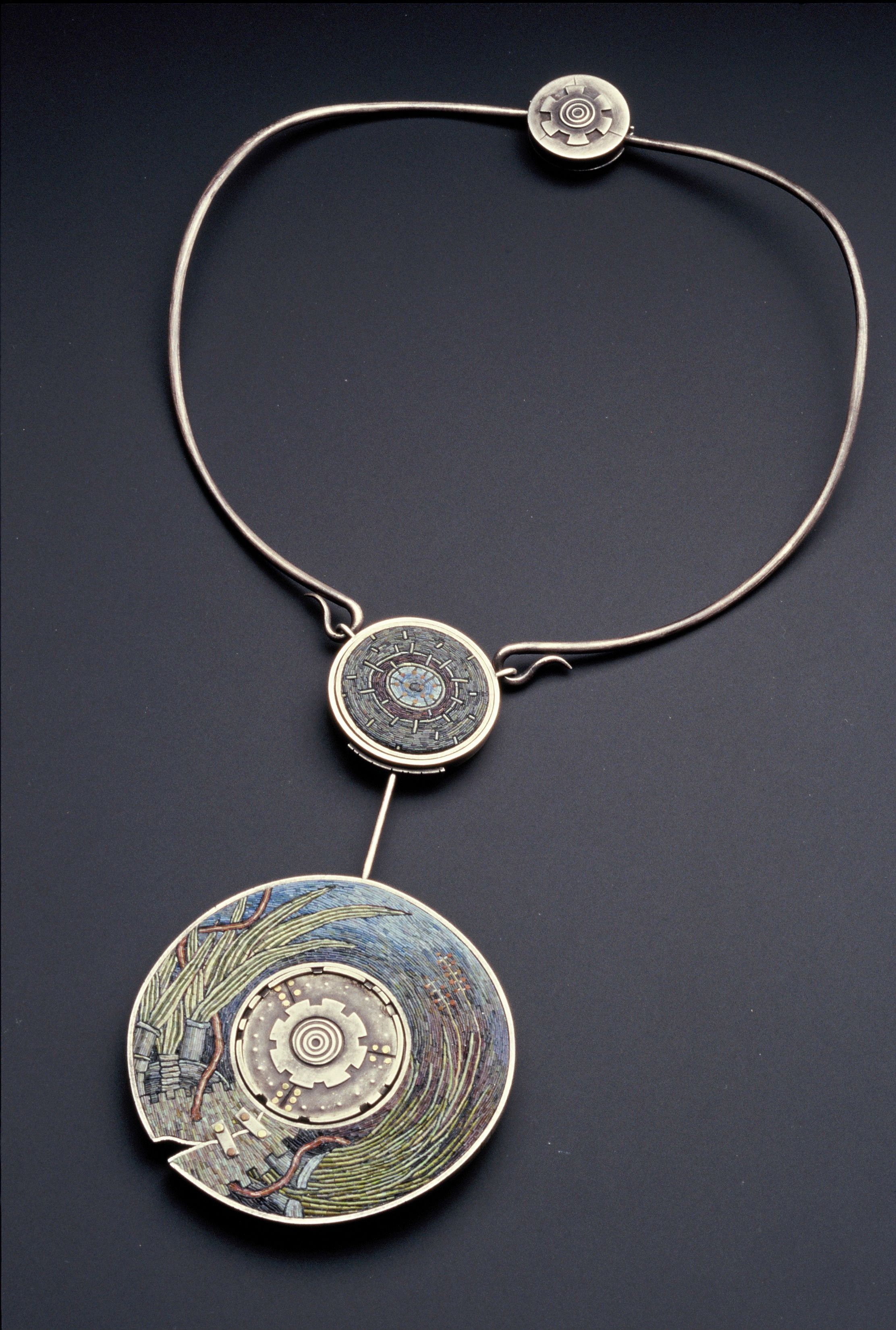 Silver bezel by Chuck Domitrovich This is part of a series of four mosaics. We own one, one is in the collection of TAM (Quilt) and two are out in the world somewhere!