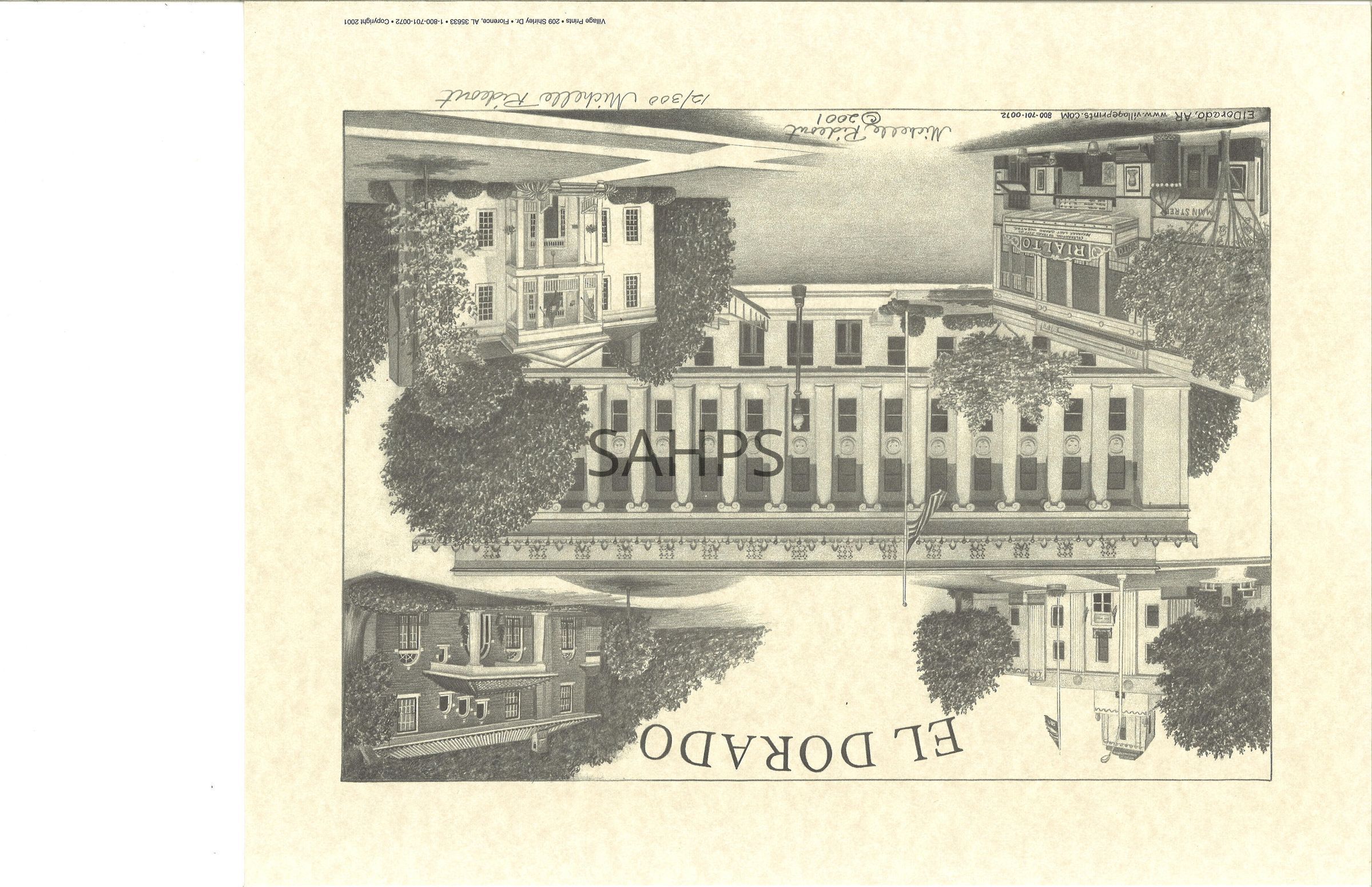 Print of El Dorado buildings. Print of pencil drawing; 12th in a run of 300.