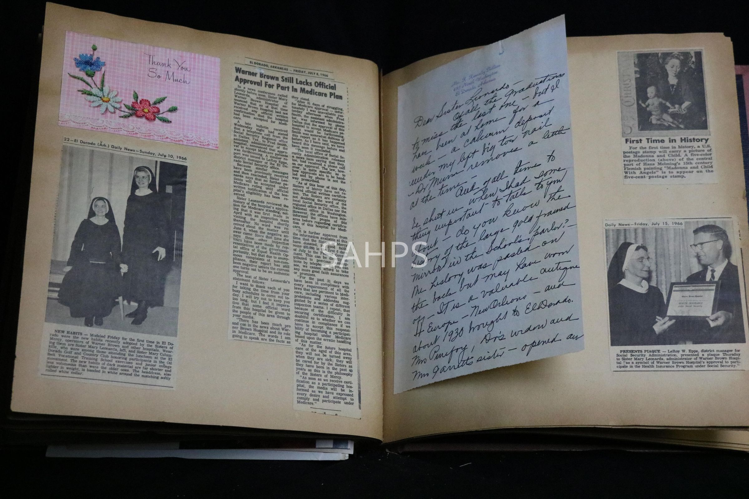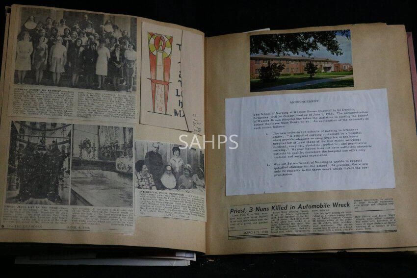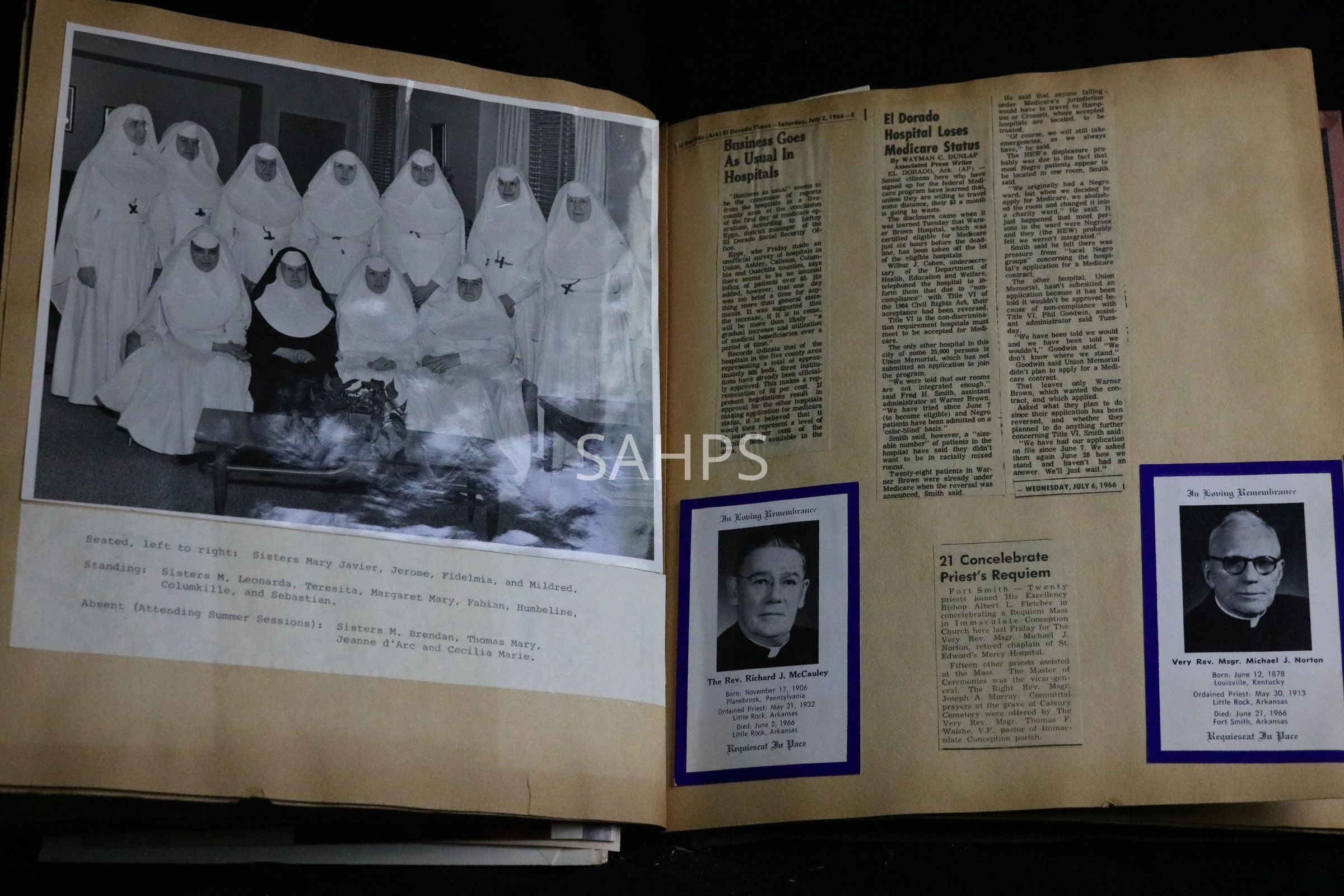 Scrapbook of Sisters of Mercy at Warner Brown Hospital in 1965. Contains clippings, announcements, and photos.