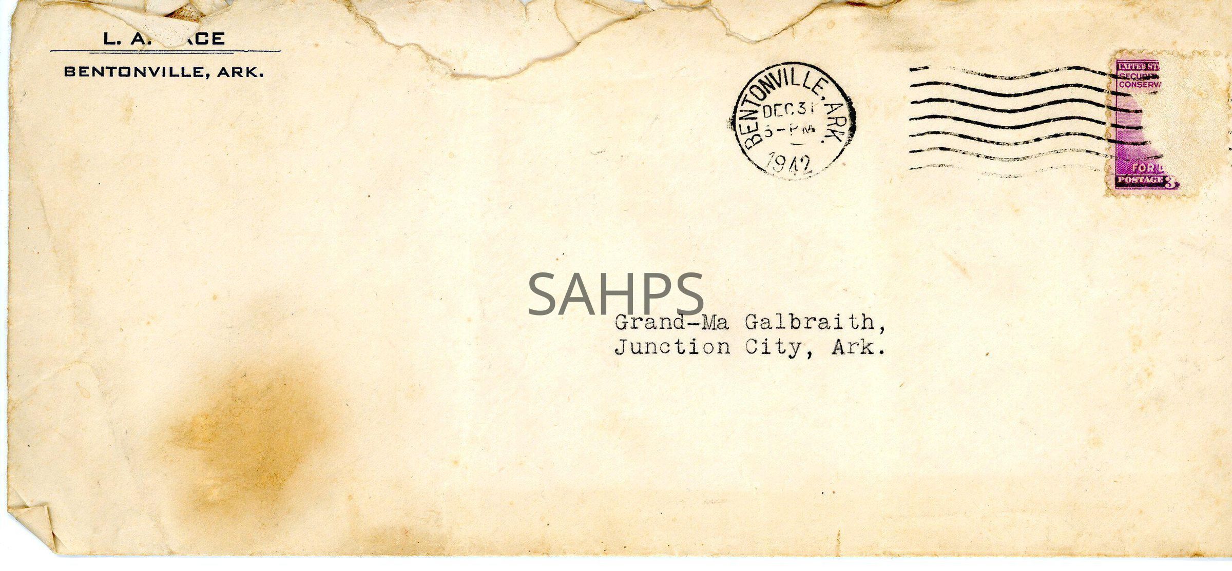 Letter to Mrs. Galbraith from L.A. Pace and family Dec. 31, 1942 with envelope