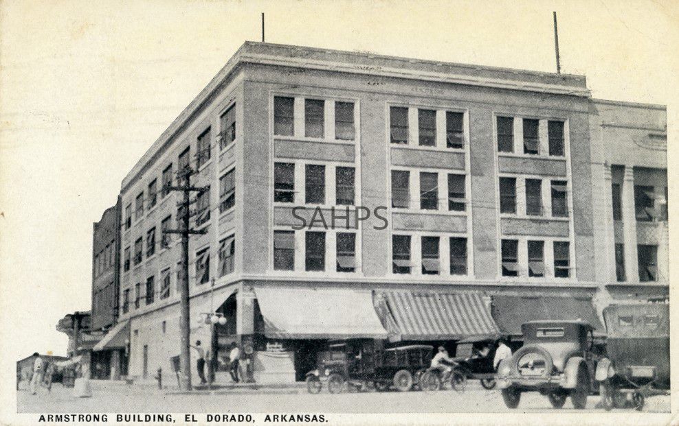Postcard of the Armstrong Building in El Dorado, Arkansas