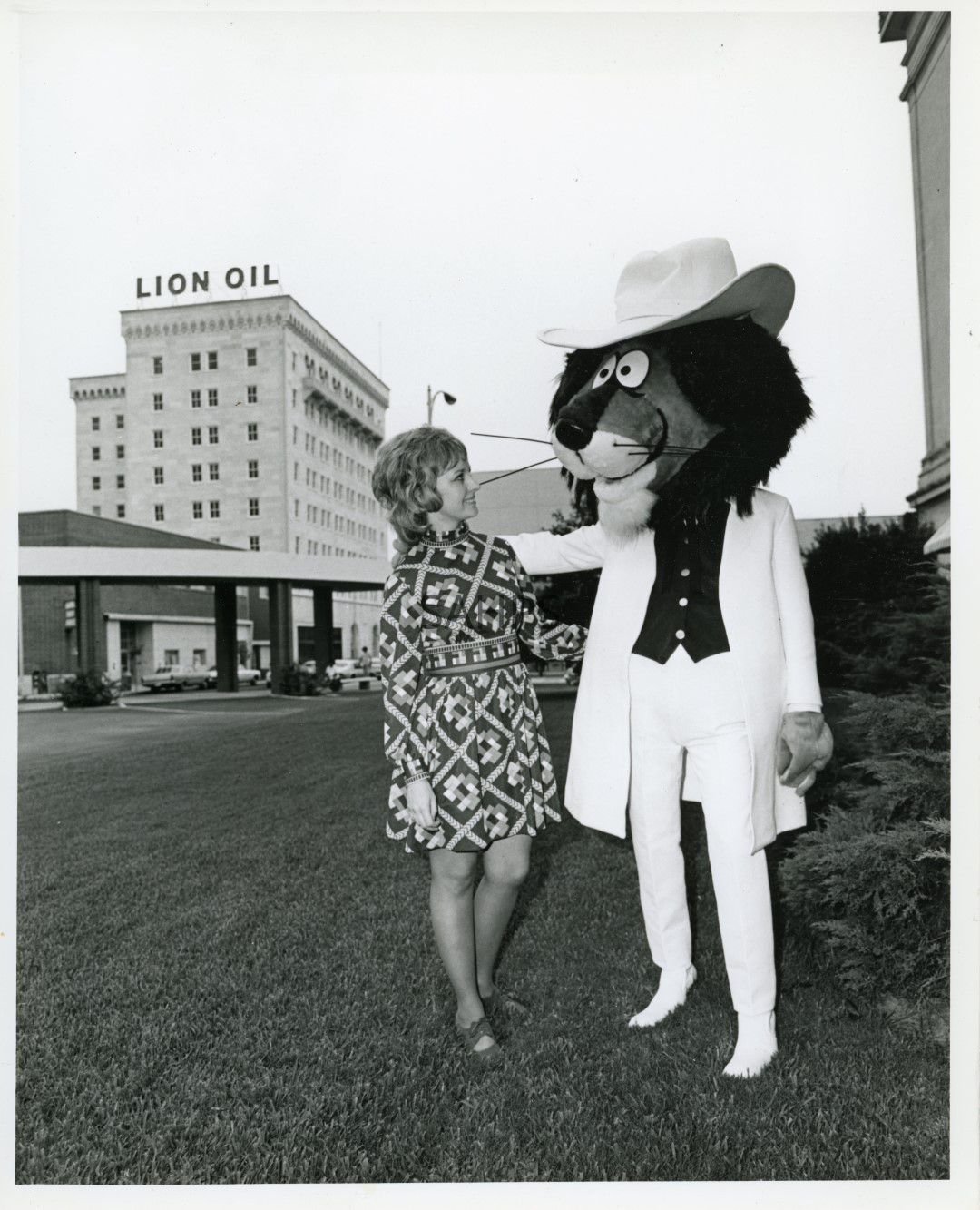 Beauregard Lion with lady in Downtown El Dorado 1972 photograph