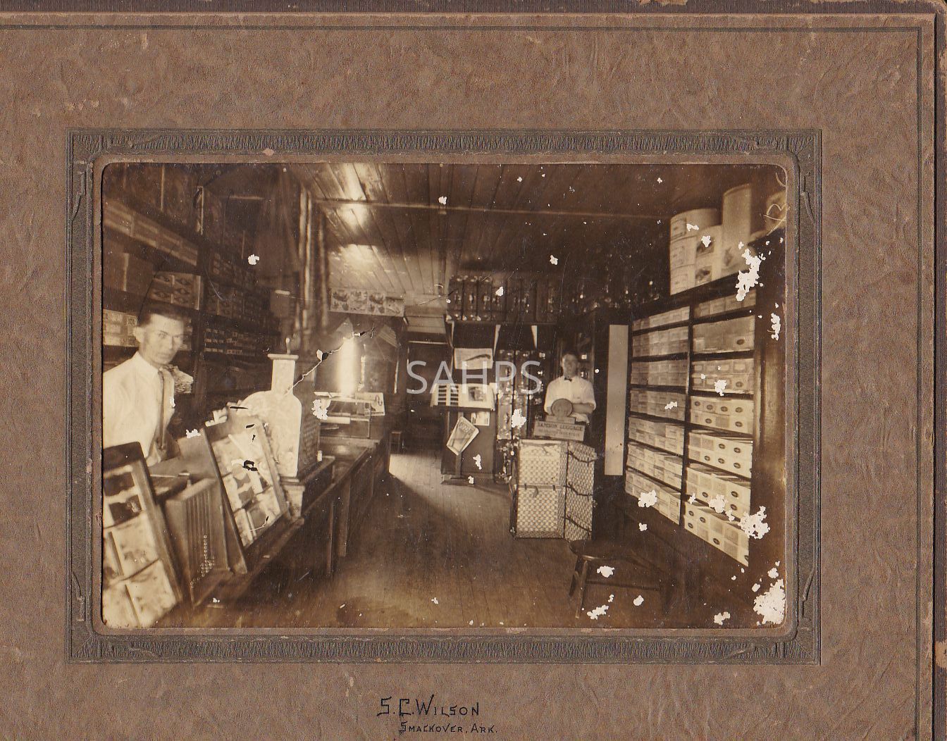 undated photo of the interior of a mercantile store; S C Wilson, Smackover - is printed on the bottom of the mounting paperboardCollection