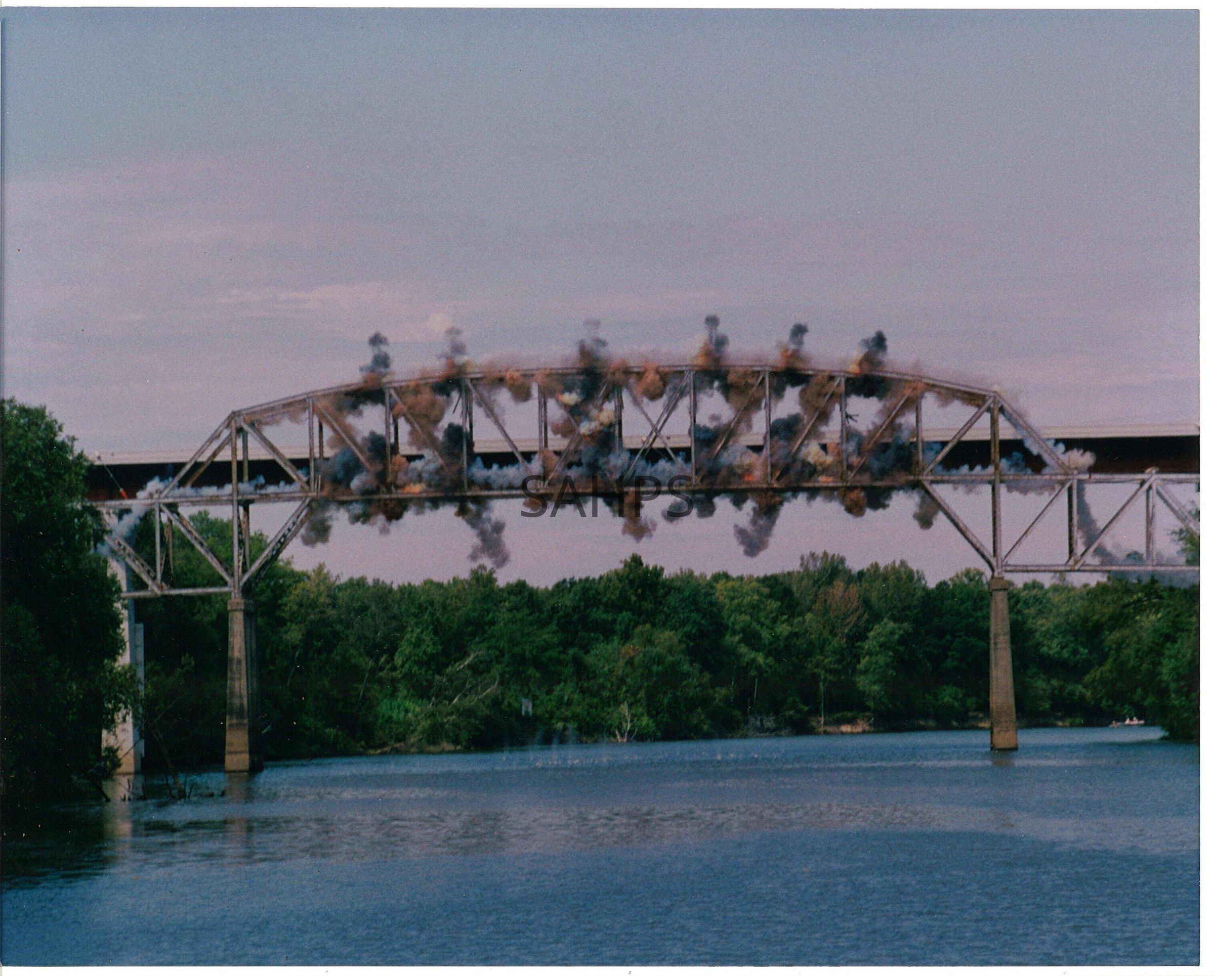 Explosive demolition of the main span of the Ouachita River Bridge in Calion, AR.