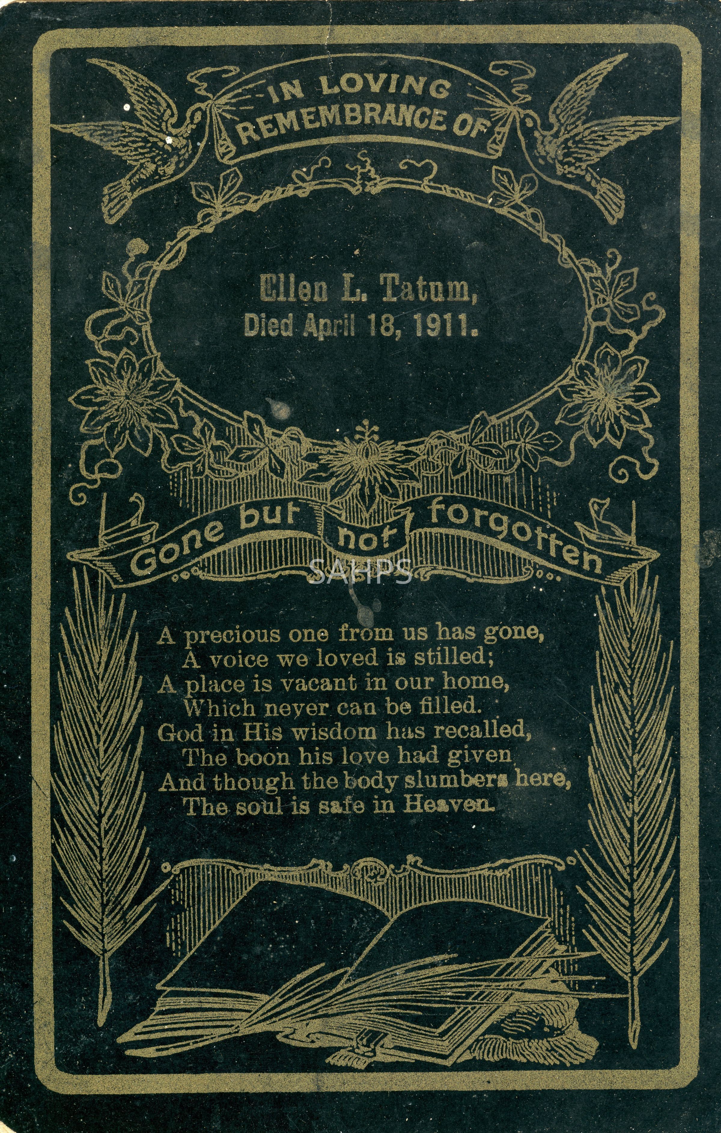 Ellen L. Tatum Remembrance CardEntry/Object ID