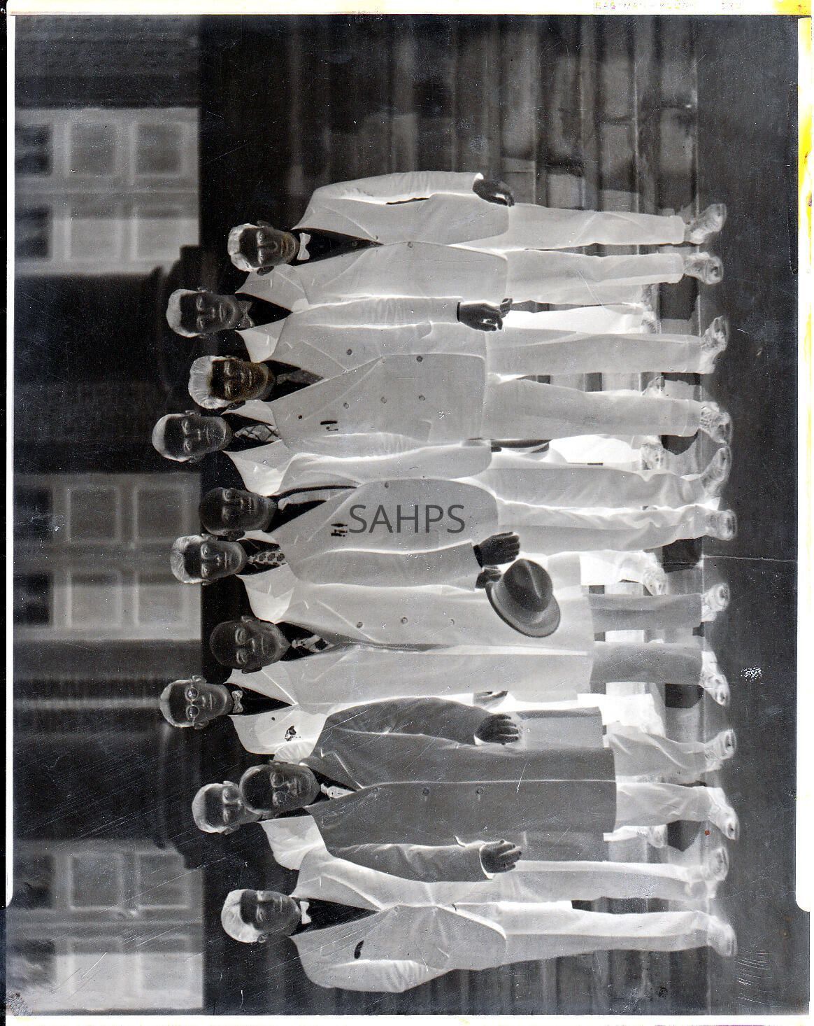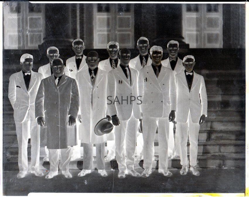 photo of 11 men in suits in the steps of the Prespyterian Church in El Dorado
