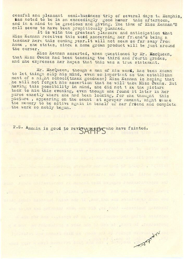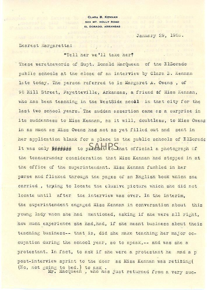 Letter to Margaret Owens from Clara B. Kennan Jan. 29, 1926