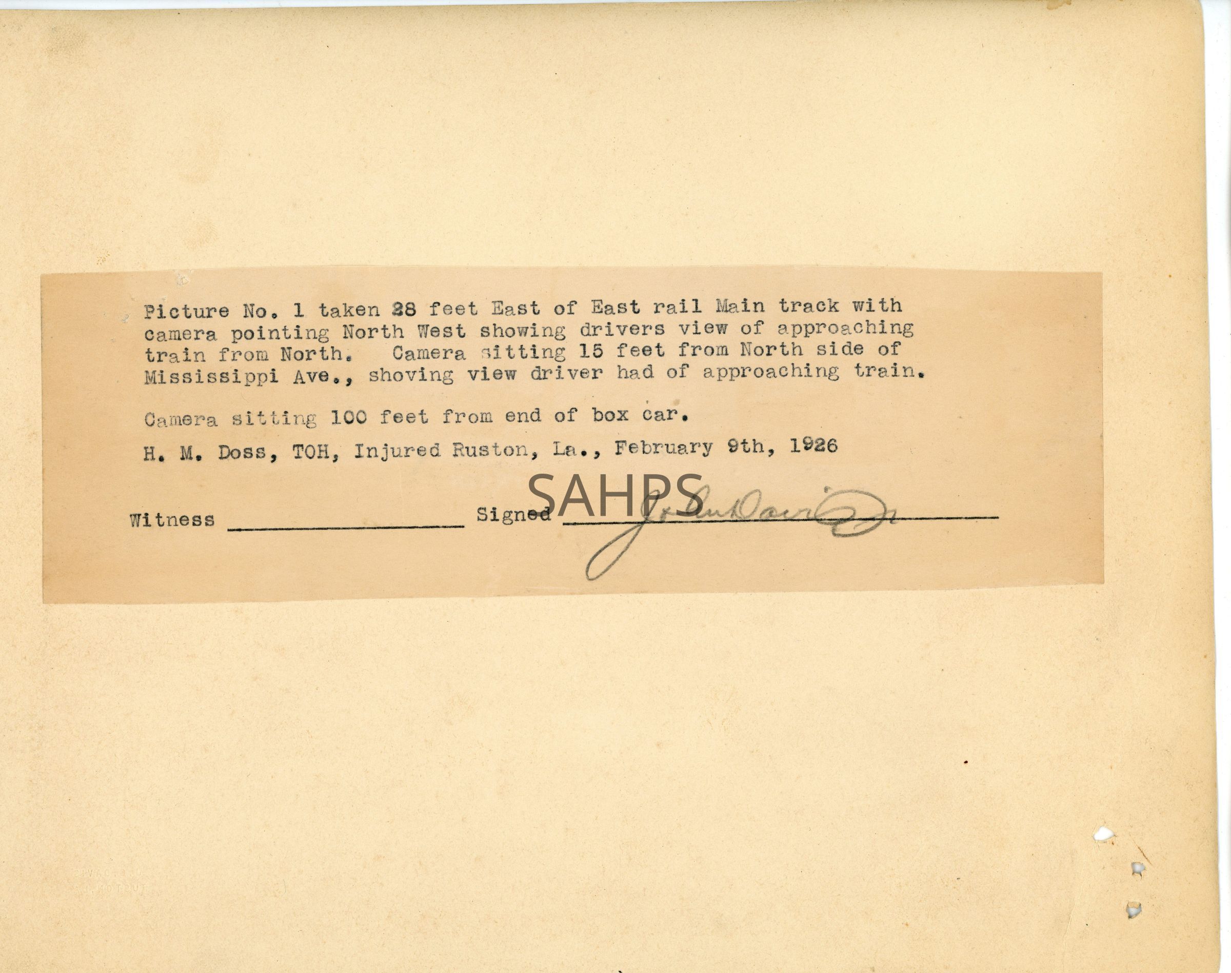 H. M. Doss, TOH, injured Ruston, La., February 9th 1926Collection