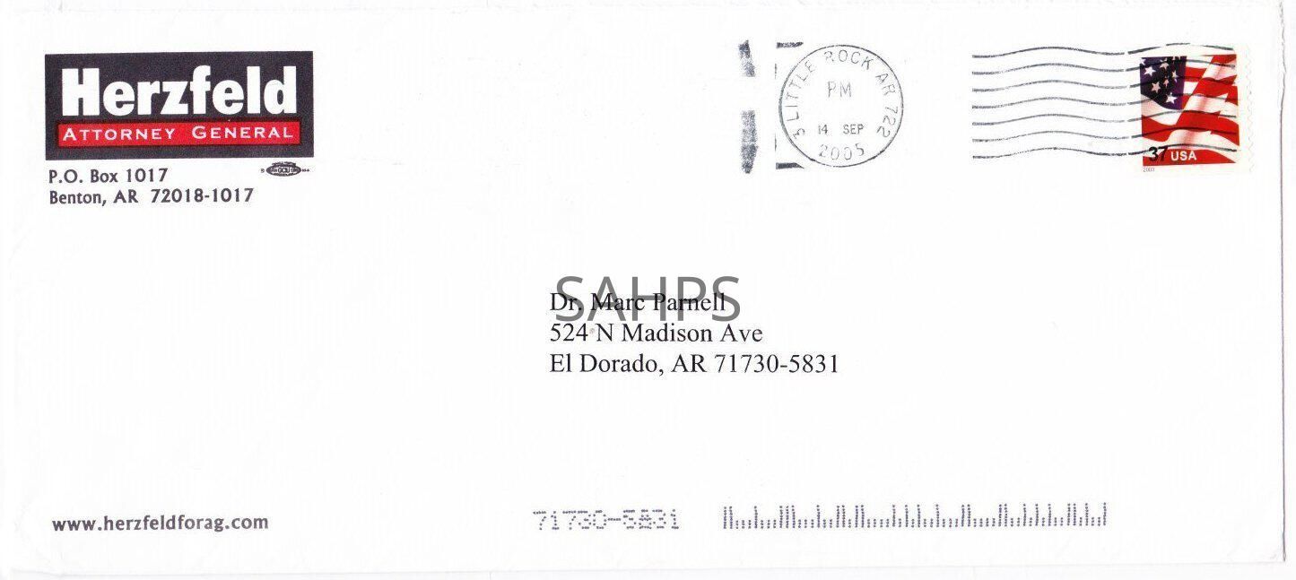 Letter from Robert Herzfeld to Dr. Marc Parnell Sept. 14, 2005 includes envelope