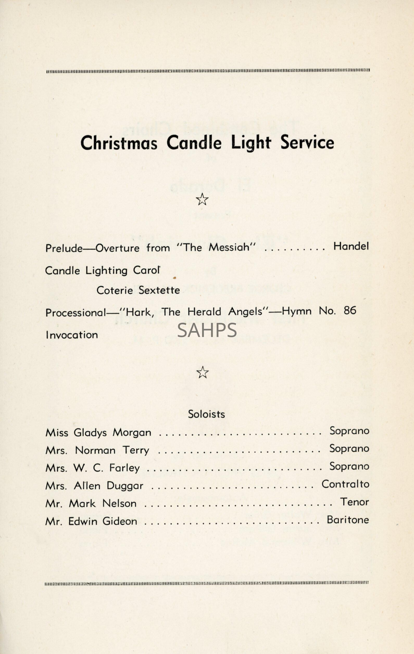 Program for The Combined Choirs of El Dorado Present "The Messiah" by George frederick Handel. First Methodist Church - December 12--5:00p.m.Collection