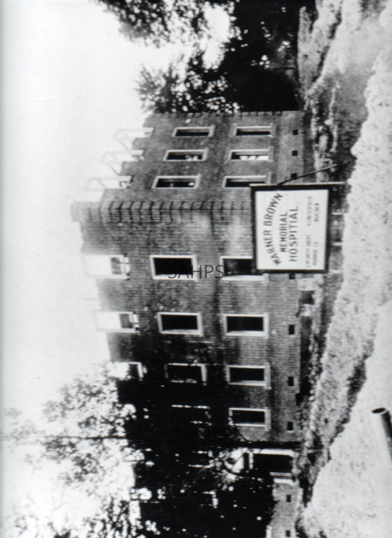Copy of 1919 photograph of the construction of Warner Brown Memorial Hospital. J. W. Swift, Architect, B. Crutchfield, Builder. In black metal frame.Collection