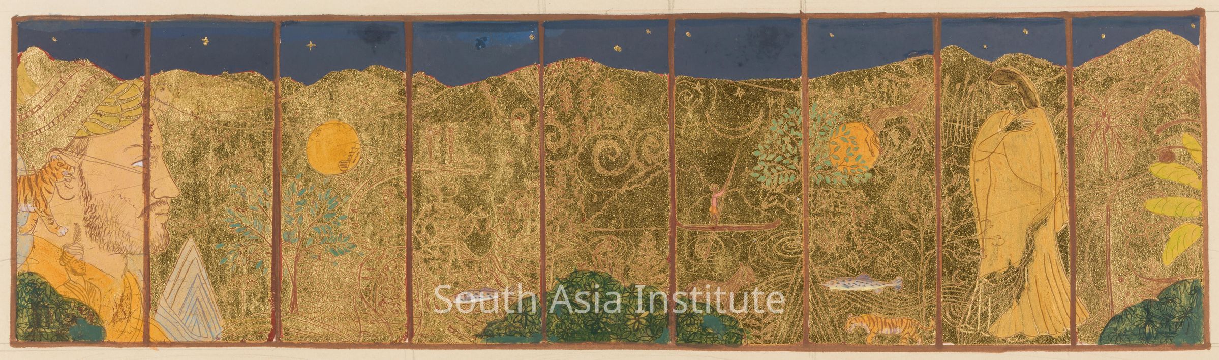 Buck is a British miniaturist who graduated from the Prince’s School of Traditional Arts in London and studied miniature painting in Jaipur, India. His work is essentially an exploration and celebration of Nature. This work is a dreamscape painted after a visit to a tiger reserve in Kerala during his honeymoon.
