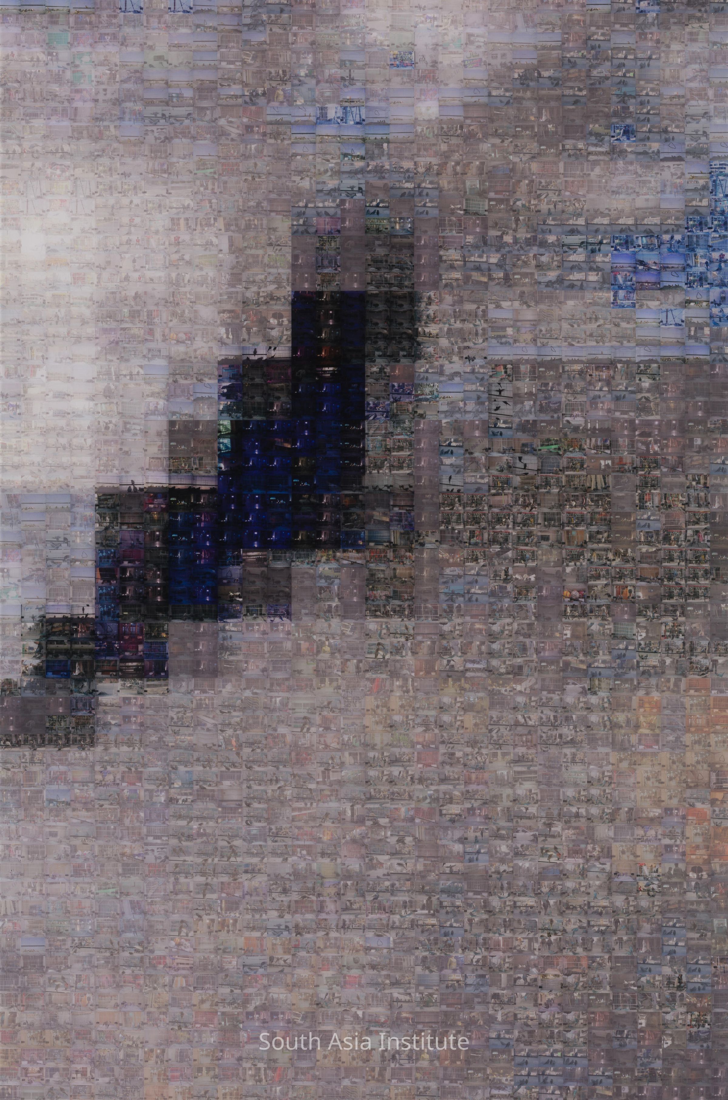 Rana is a graduate from the NCA in Lahore and also from the Massachusetts College of Fine Arts in Boston. In his photography, sculpture and digital printmaking, Rana transposes imagery from one time and place to another, through manipulation, repetition and rearrangement. In his photomontages, he reconfigures tiny mosaic like images into micro-mosaics using a computer software program. He has not abandoned traditional miniature art completely – the traditional grid is very apparent in his work. On close examination, the viewer discovers thousands of micro images of birdcages that are usually placed on rooftops in Lahore.