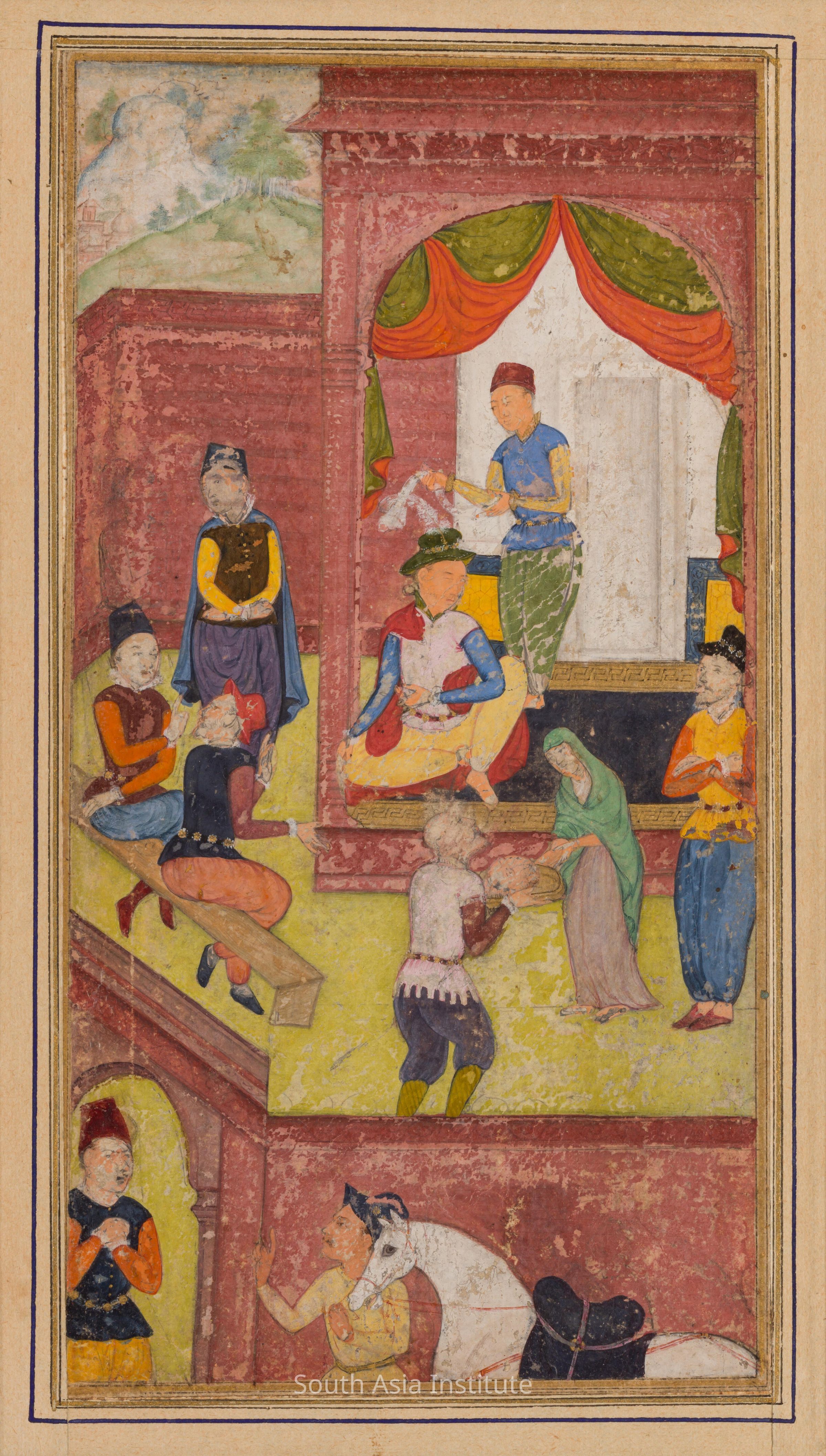 Mughal miniatures were a blend of the vivid colors favored by Indian painters and the delicate lines preferred by Persian painters. The early works were small, some only a few inches in size, highly detailed and boldly colored. Later, the works were of a larger scale, the colors were subdued and harmonious and the surrounding borders were magnificently decorative. Jesuit missionaries visiting the Mughal courts presented engravings and illuminated manuscripts by European artists to the Mughal Emperors, who encouraged their artists to copy the works.