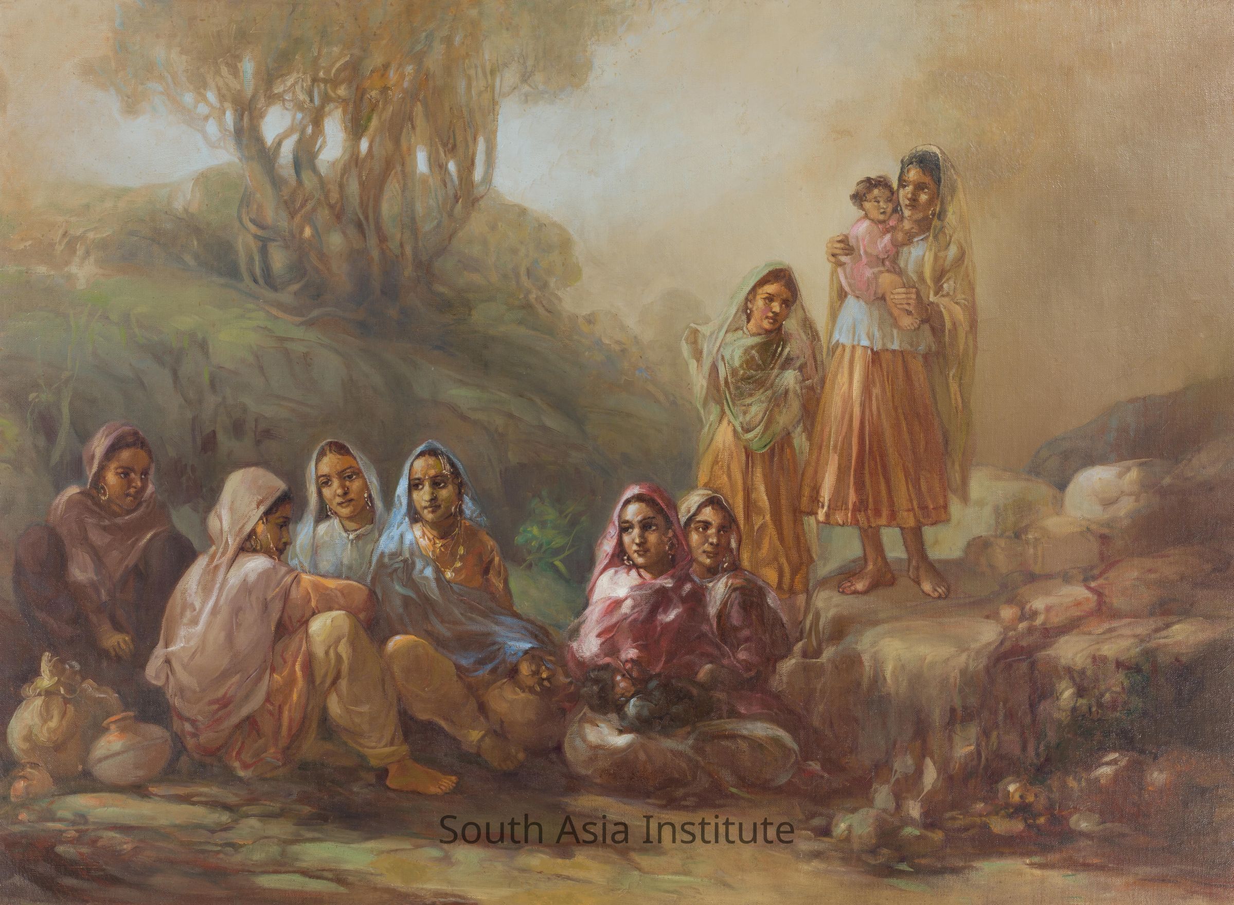 Large oil paintings filled with figures in Punjabi dress gathered in a European style landscape were popular with landed hereditary families of old Lahore. These paintings are even more appreciated today, perhaps with a different intention.
