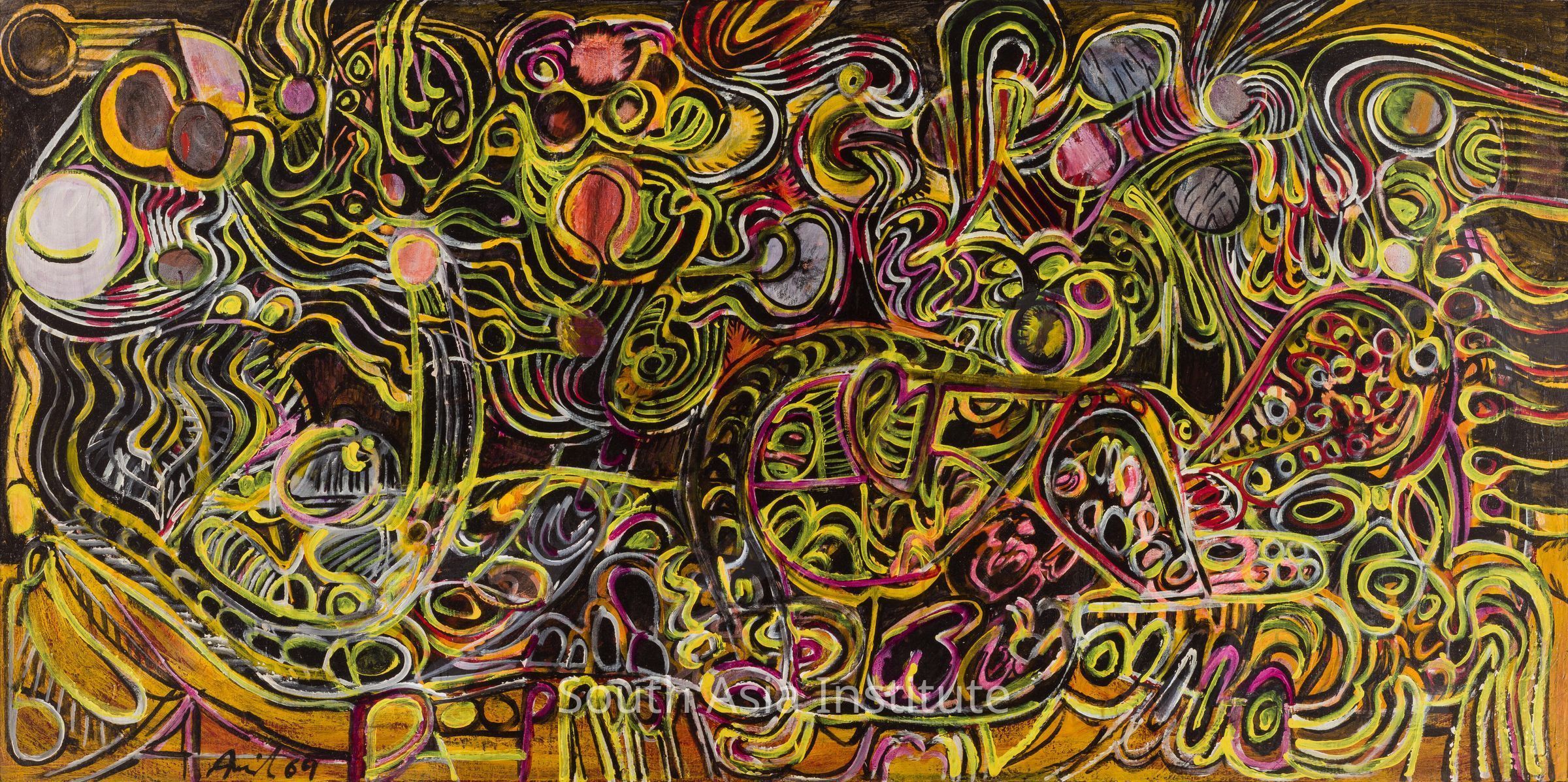 Indicative of his attraction for the curving interlocking imagery in the work of Chaim Soutine (d. 1945) and hearty brush strokes of Vincent van Gogh (d. 1890), Chandra pushed those influences into a style of his own.