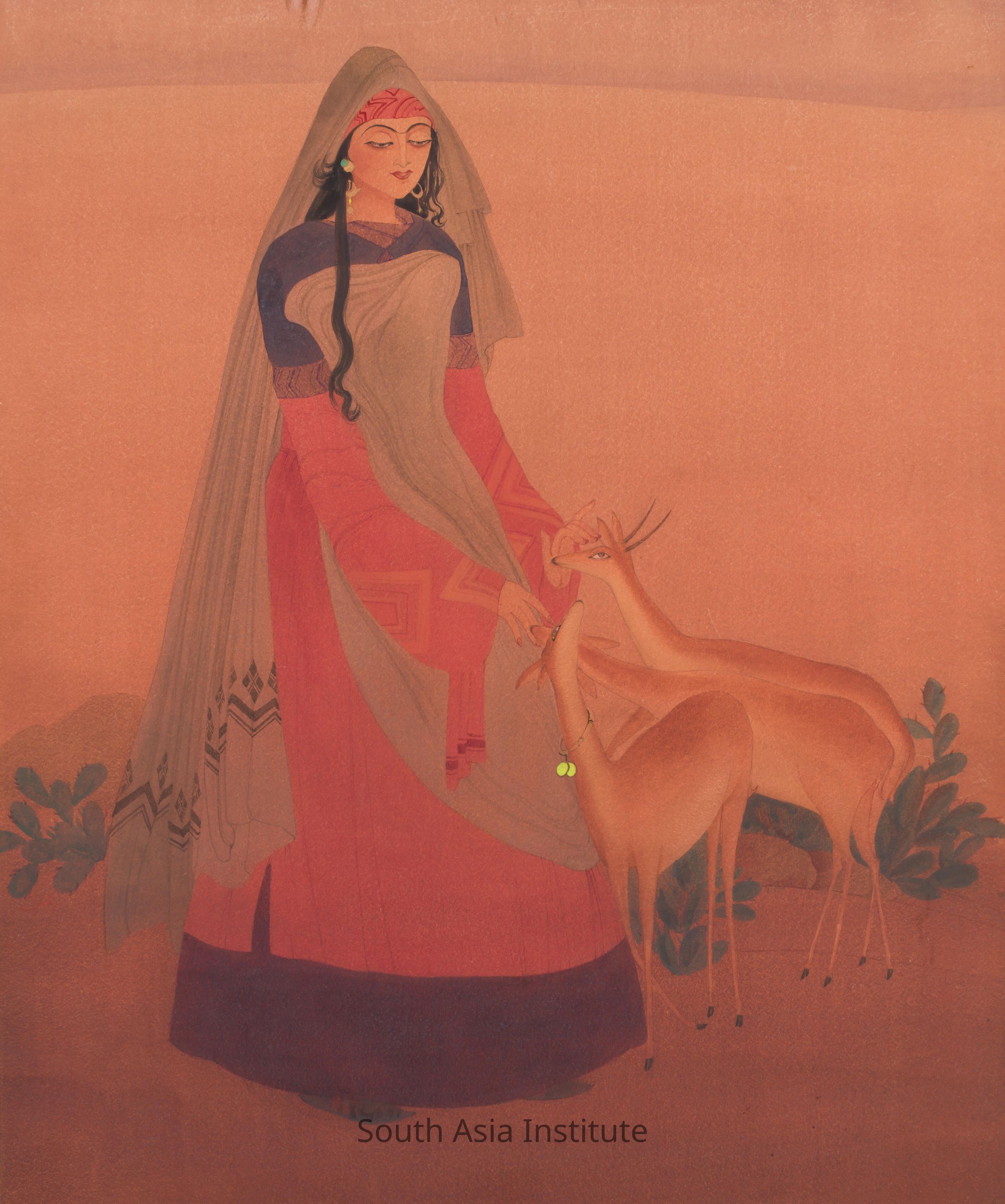 From the Sufi story of Laila/Majnun where the two fall in love but, being from different tribes, are forbidden to marry. Leila is married to another and Cass, despondent in love, wanders among deer in the wilds. Leila leaves her husband to find Cass (now called Majnun - the crazy one), but he does not recognize her upon their meeting. He is content because he found his true Beloved (God).