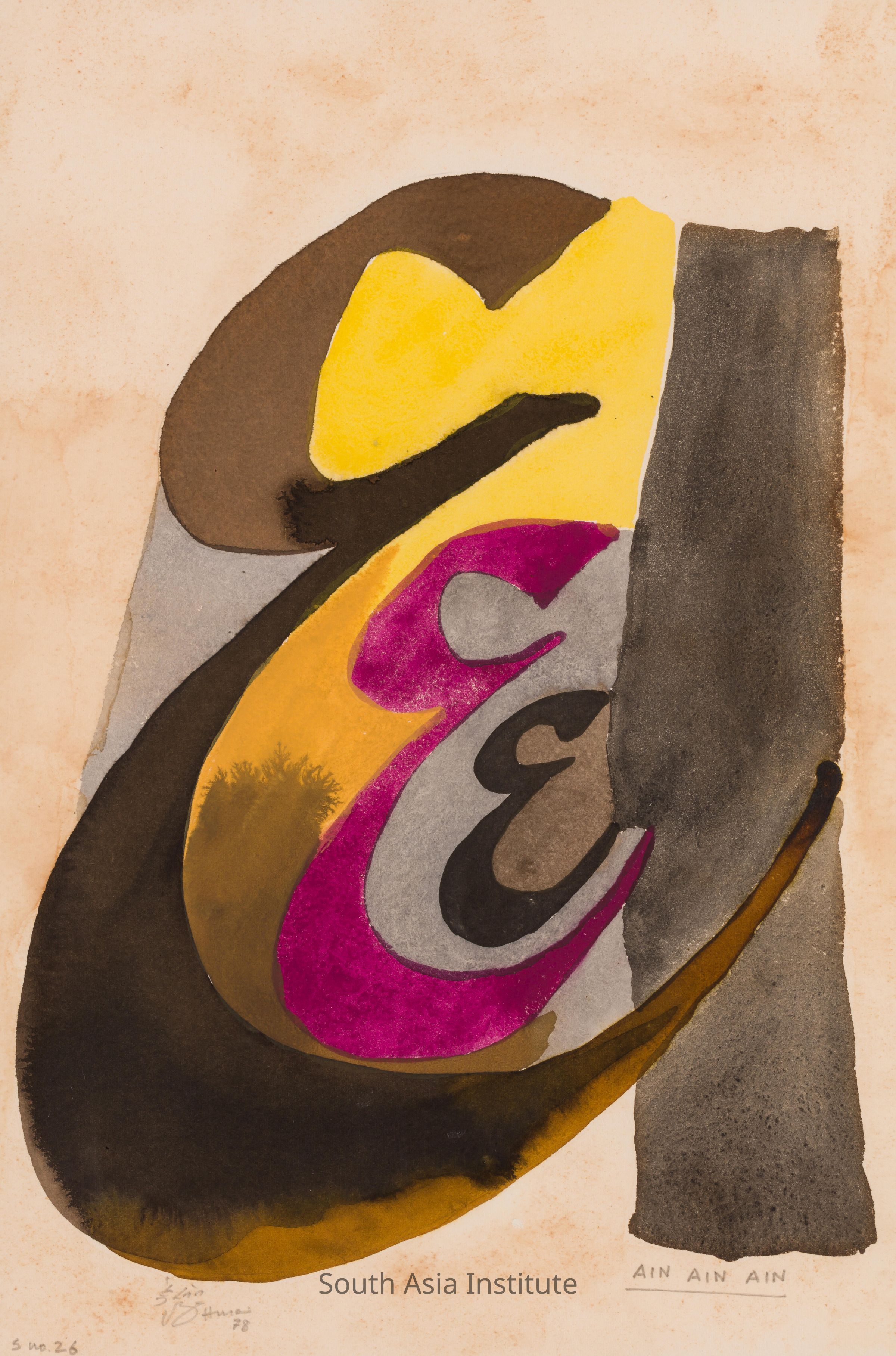 A master calligrapher and watercolorist, Husain combines his expertise in this painting.
