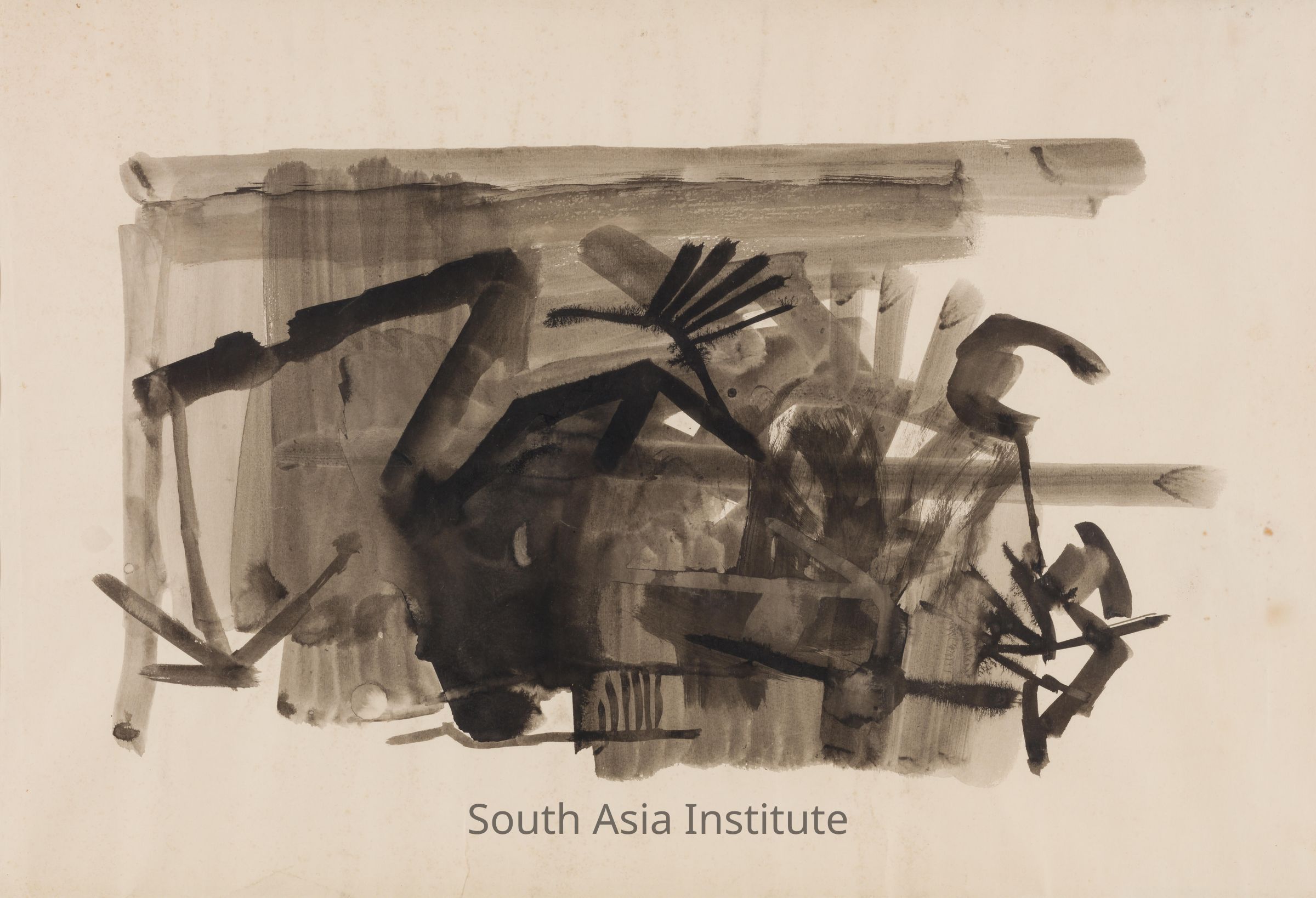 While Mohamedi’s abstractions are very much her own invention, she was deeply influenced by V.S. Gaitonde and Jeram Patel, two important Indian abstract and non- figuration painters. Mohammadi was an avid photographer who kept images and diaries of her extensive travels, actions that impacted her work as well.