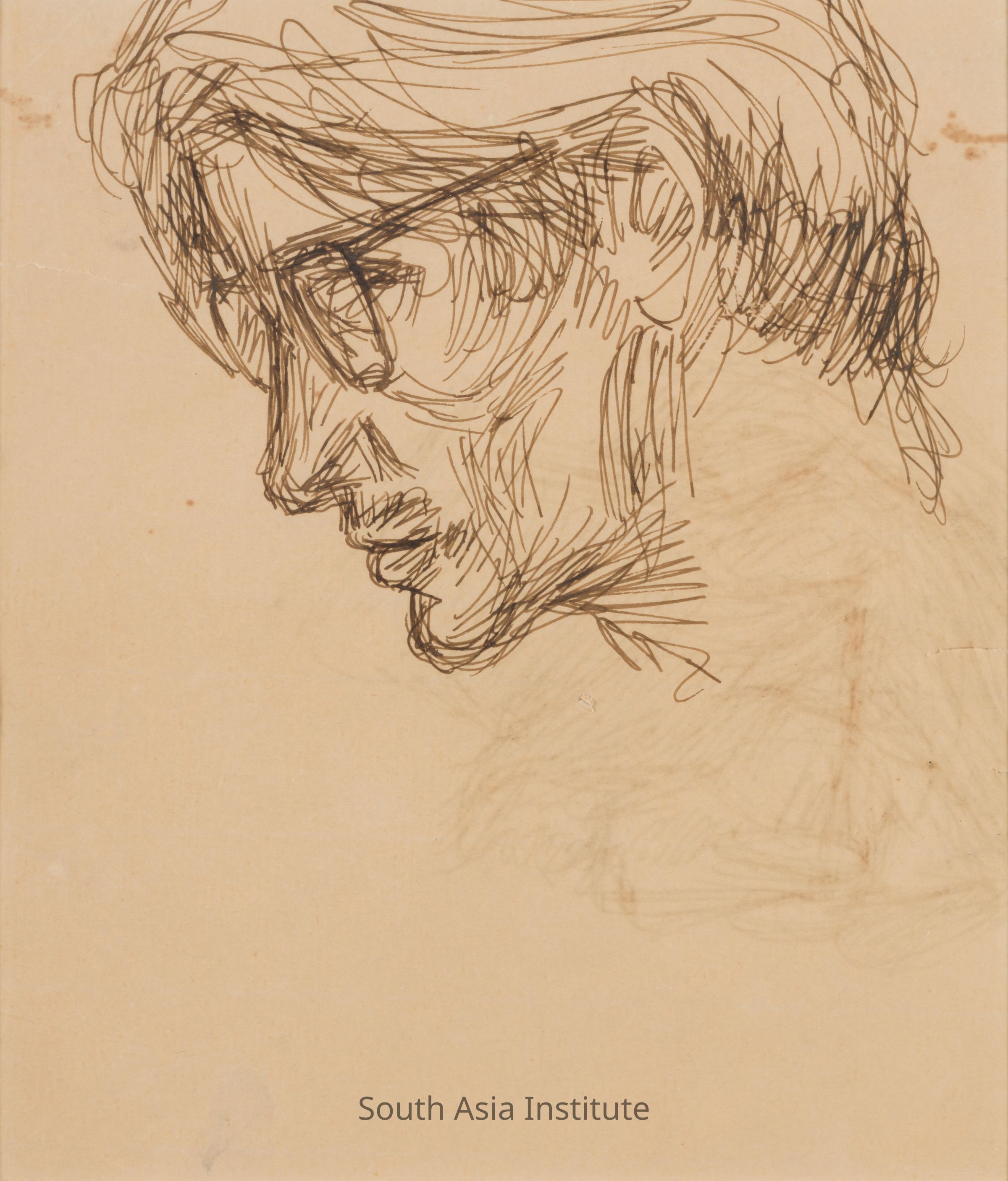 Sadequain loved to make quick portraits of his admirers to show off his draftsmanship skill and give pleasure. This self-portrait of a youthful Sadequain is an unusually realistic rendering without flourish or abstraction.