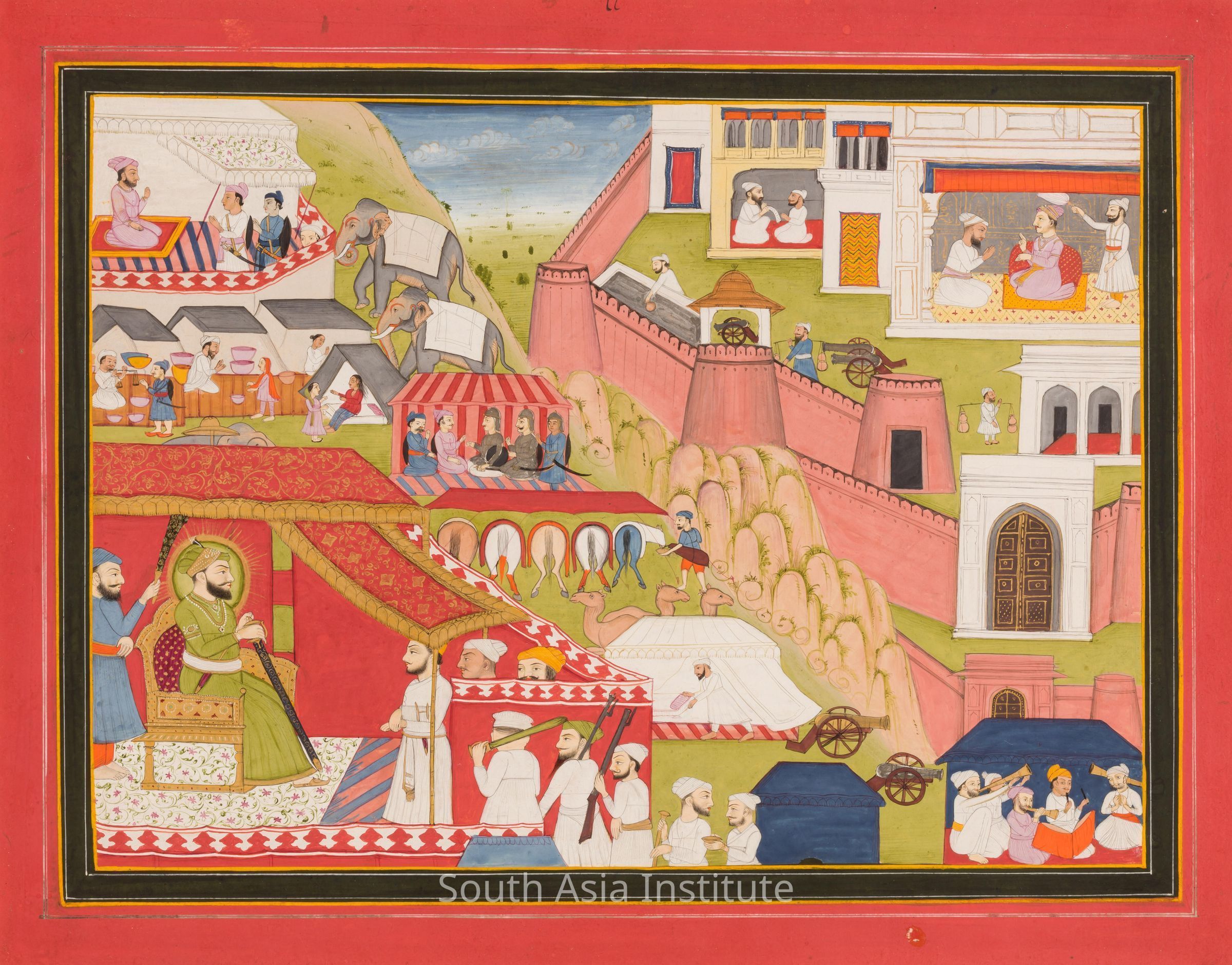 The Rajput style, also known as Rajasthani style, flourished in Rajasthan in the 17th and 18th centuries. The artists combined local traditions with Persian, Mughal, Chinese and European styles. In addition to creating paintings on paper, these artists also painted murals on the walls of palaces, forts and mansions that depicted the ruler and his accomplishments.