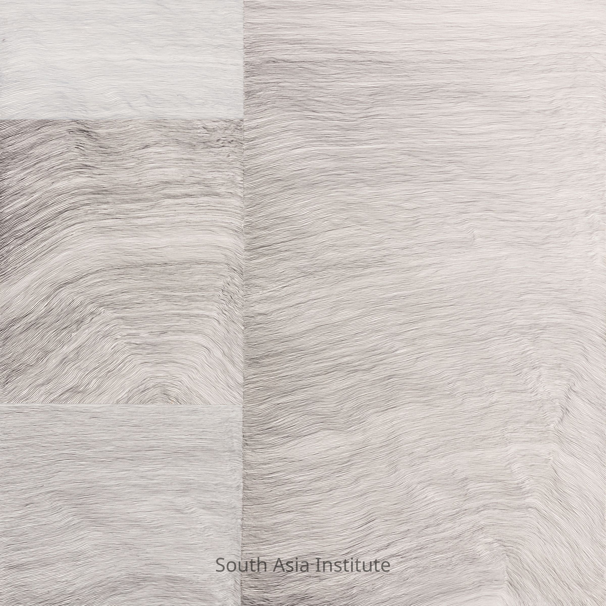Pakistani artist who throughout his career has focused on calligraphy, language, abstraction and minimalism. This work takes its inspiration from calligraphy and the palette of black and white is a reference to the printed page of a book, but the artist maintains that the work does not denote any meaning and the inspiration is from the forms of letters rather than the written text. While his source of imagery is derived from the world around him, he works relentlessly to render it characterless and meaningless. The rhythmic optical illusions created by the repeating black symbols against the white background mimic the auditory experience of chants visually. (From Contemporary Chronicles)