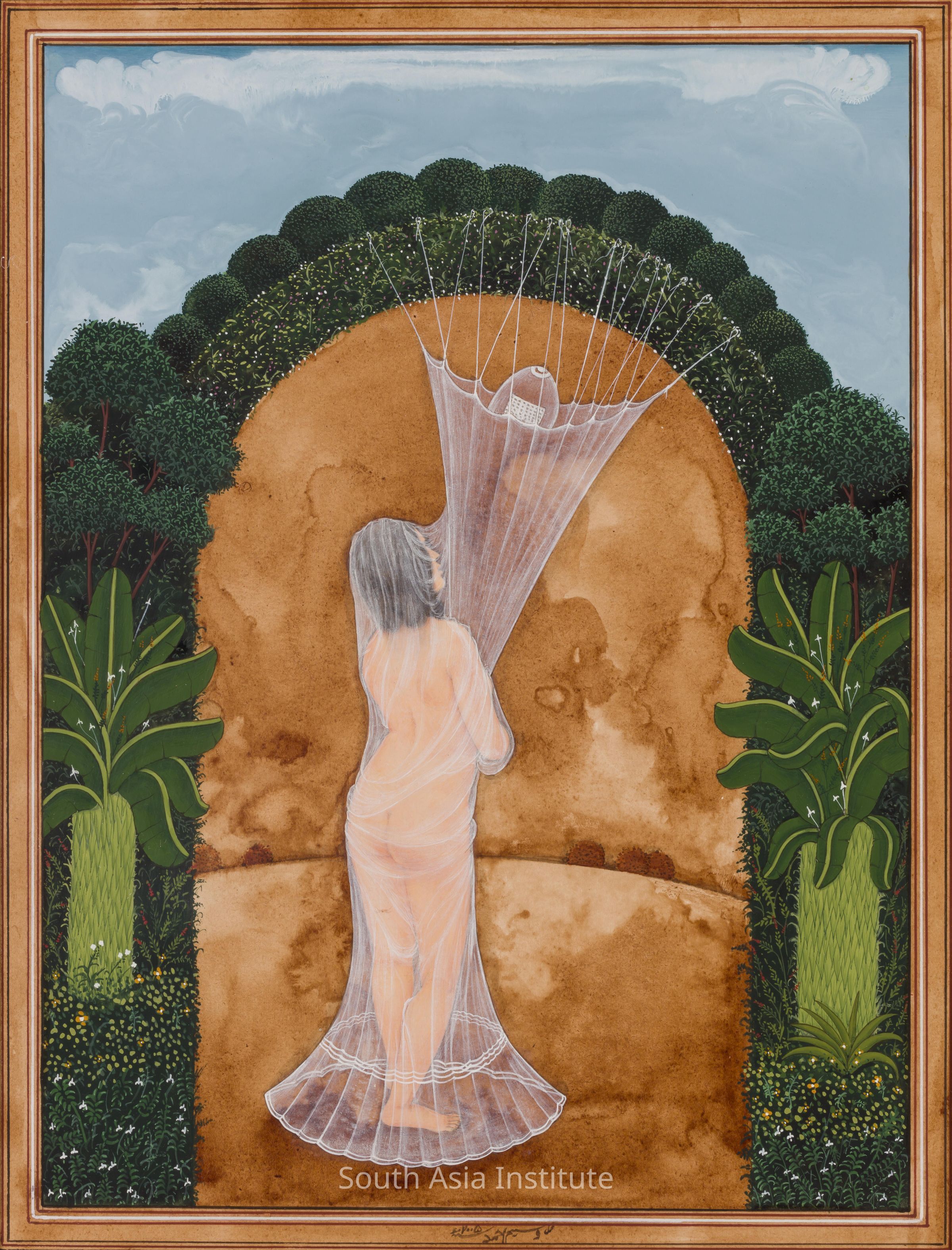 An adaption from The Valpincon Bather, painted by Jean Auguste Dominique Ingres, who in turn was inspired by a sculpture of Venus Italica by Antonio Canova.