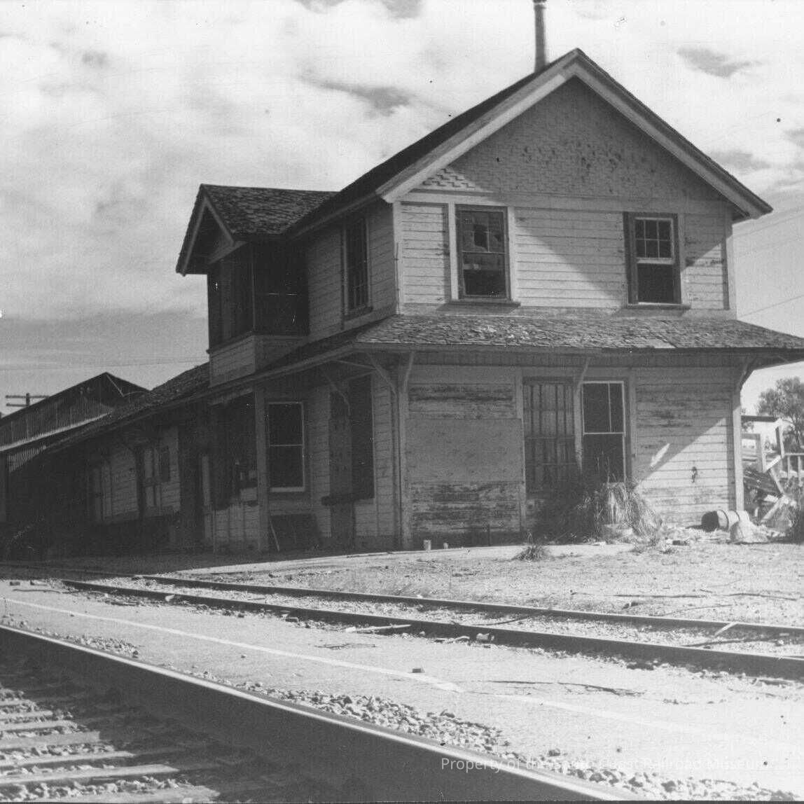 B&W photo of Goleta Depot, 1979. Shows depot in closed condition.