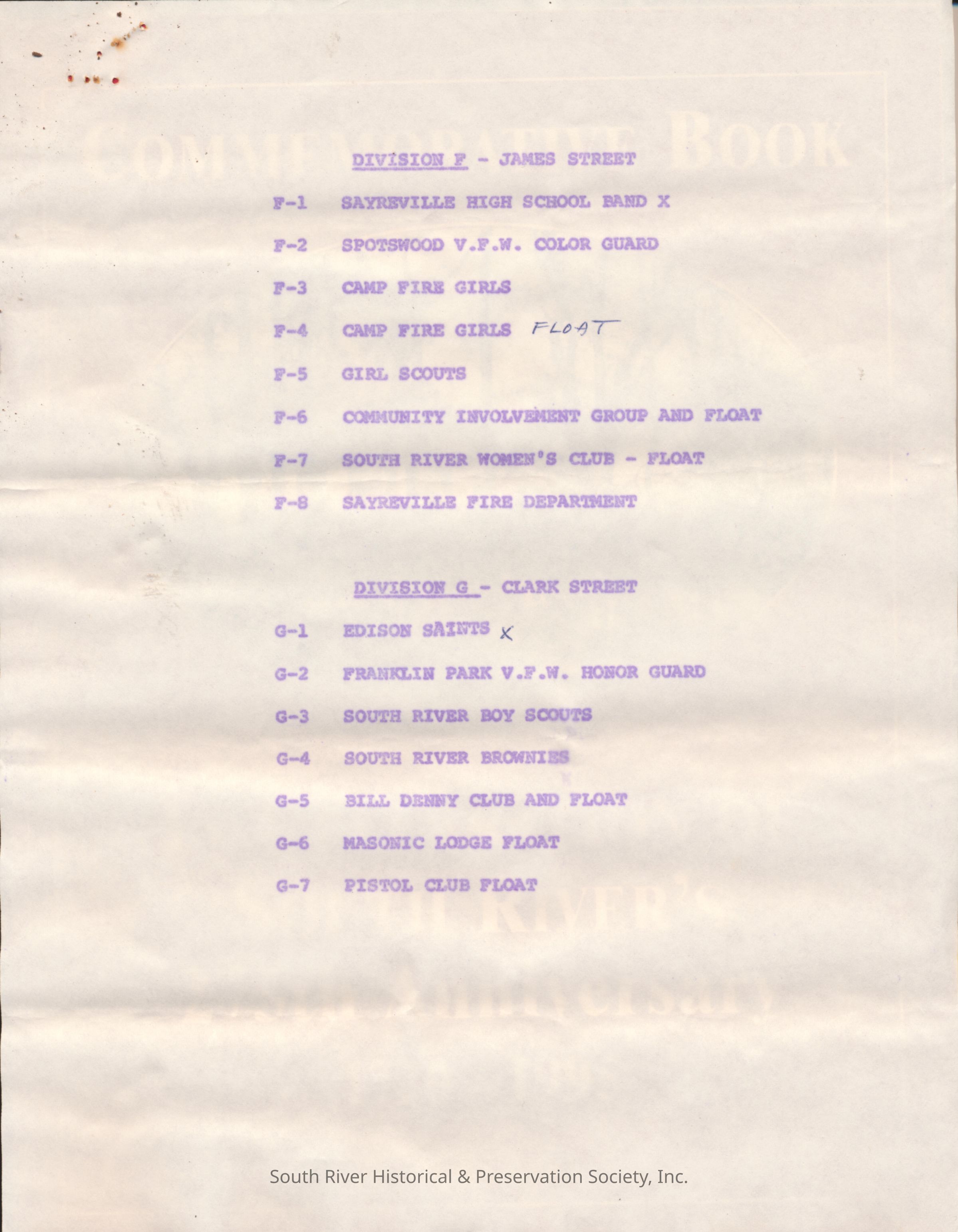 Line of March for the Parade for South River's 250th AnniversaryEntry/Object ID