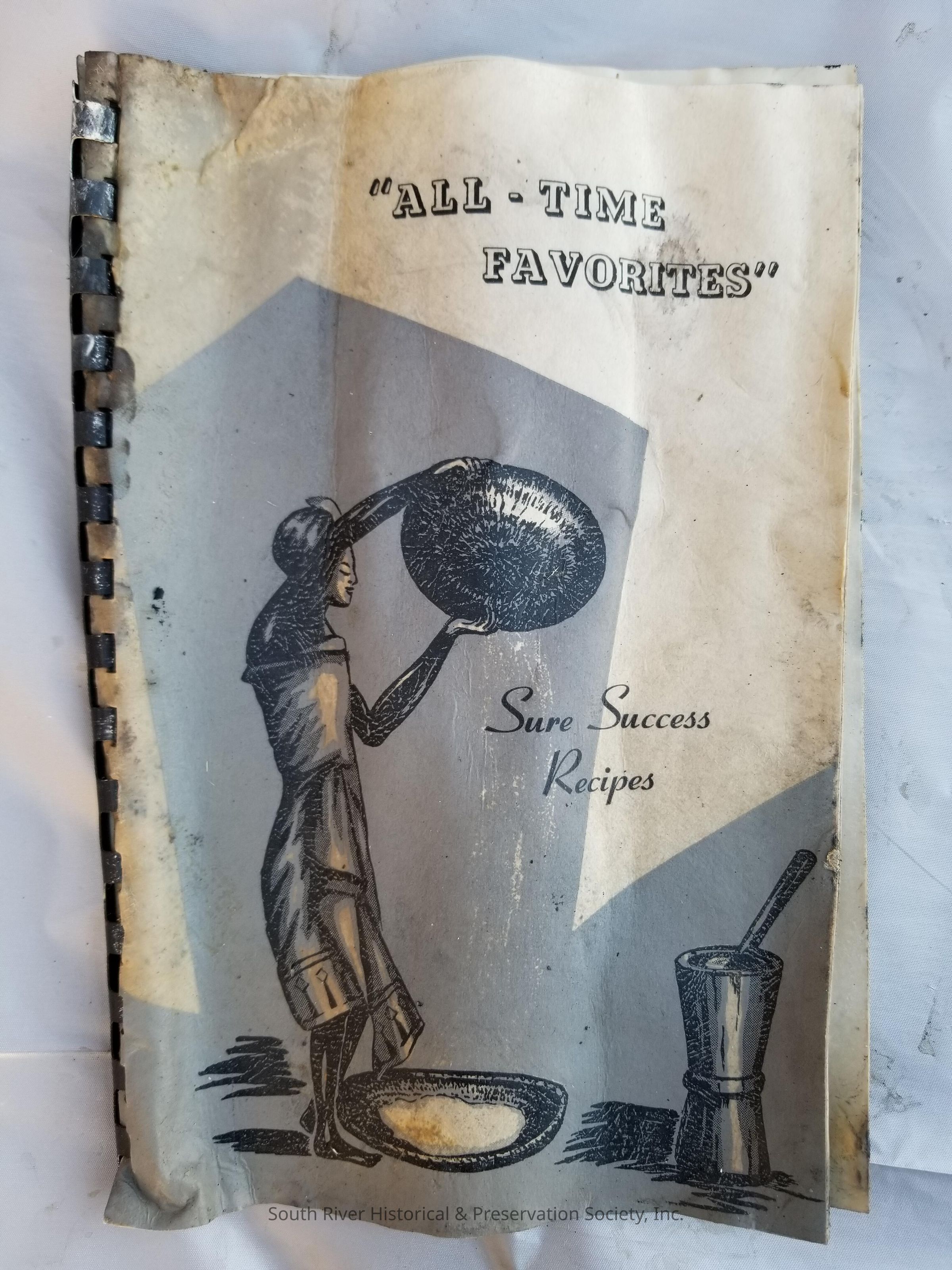 Cookbook created by the South River Columbiettes. Poor condition with extensive water damage.