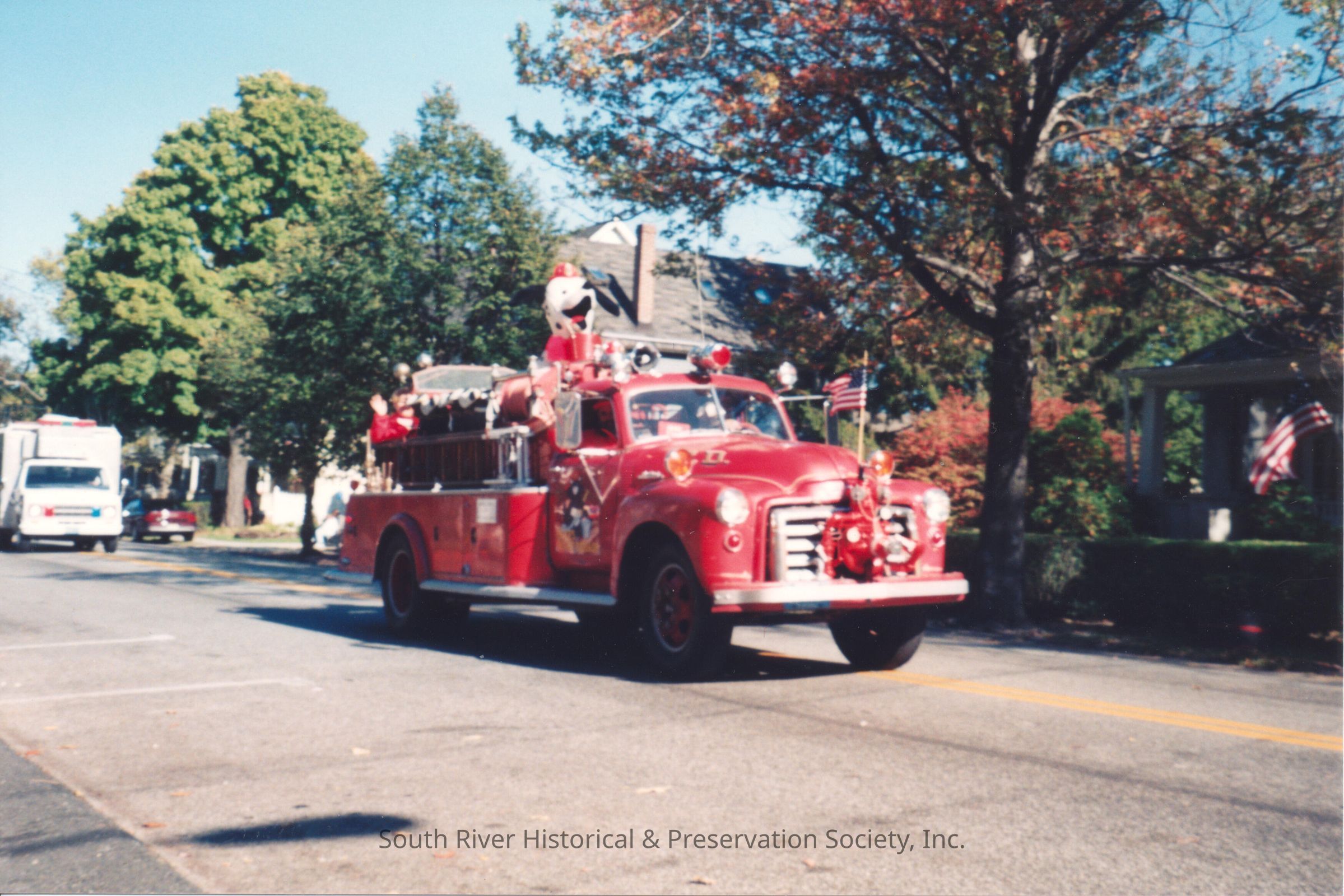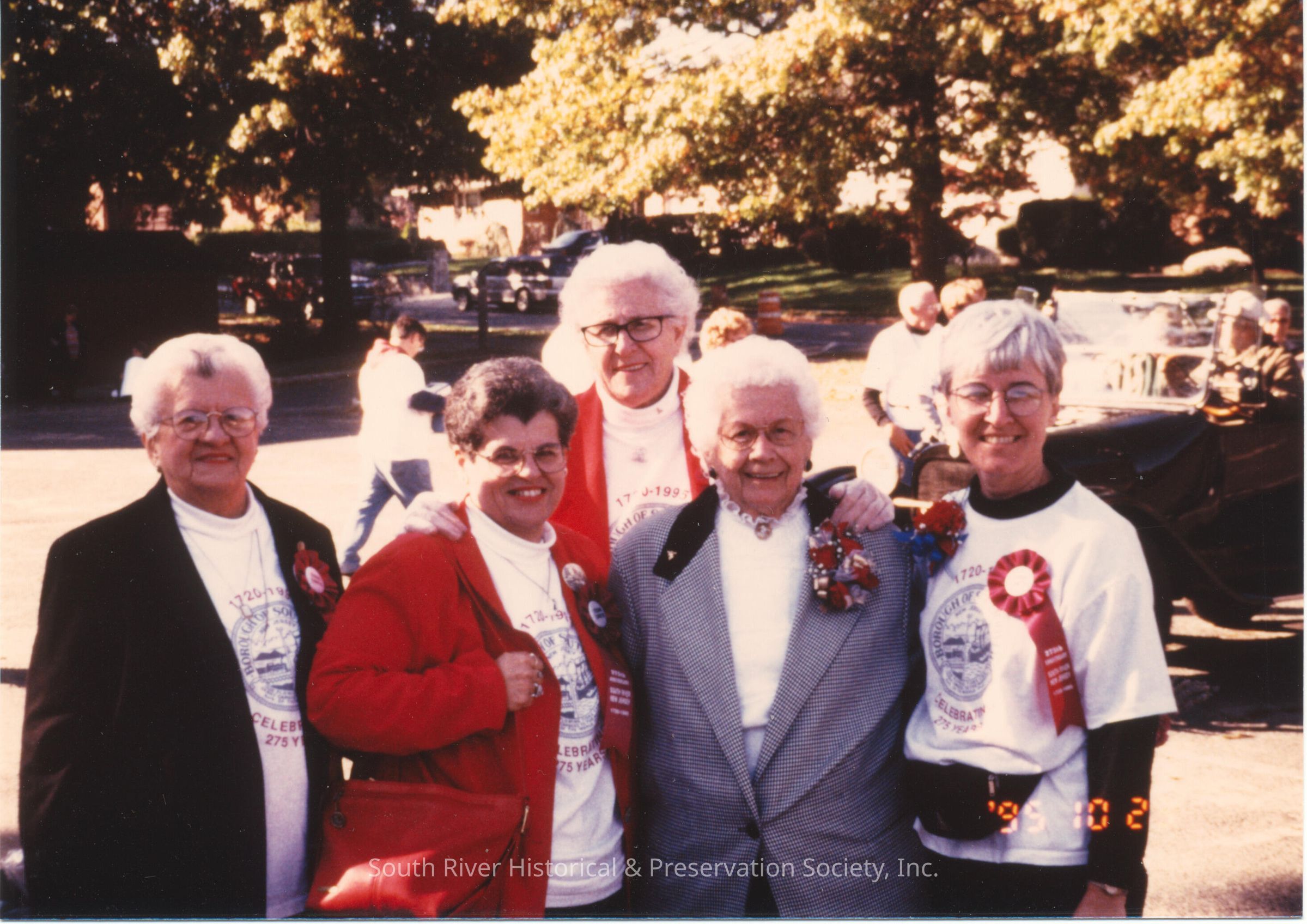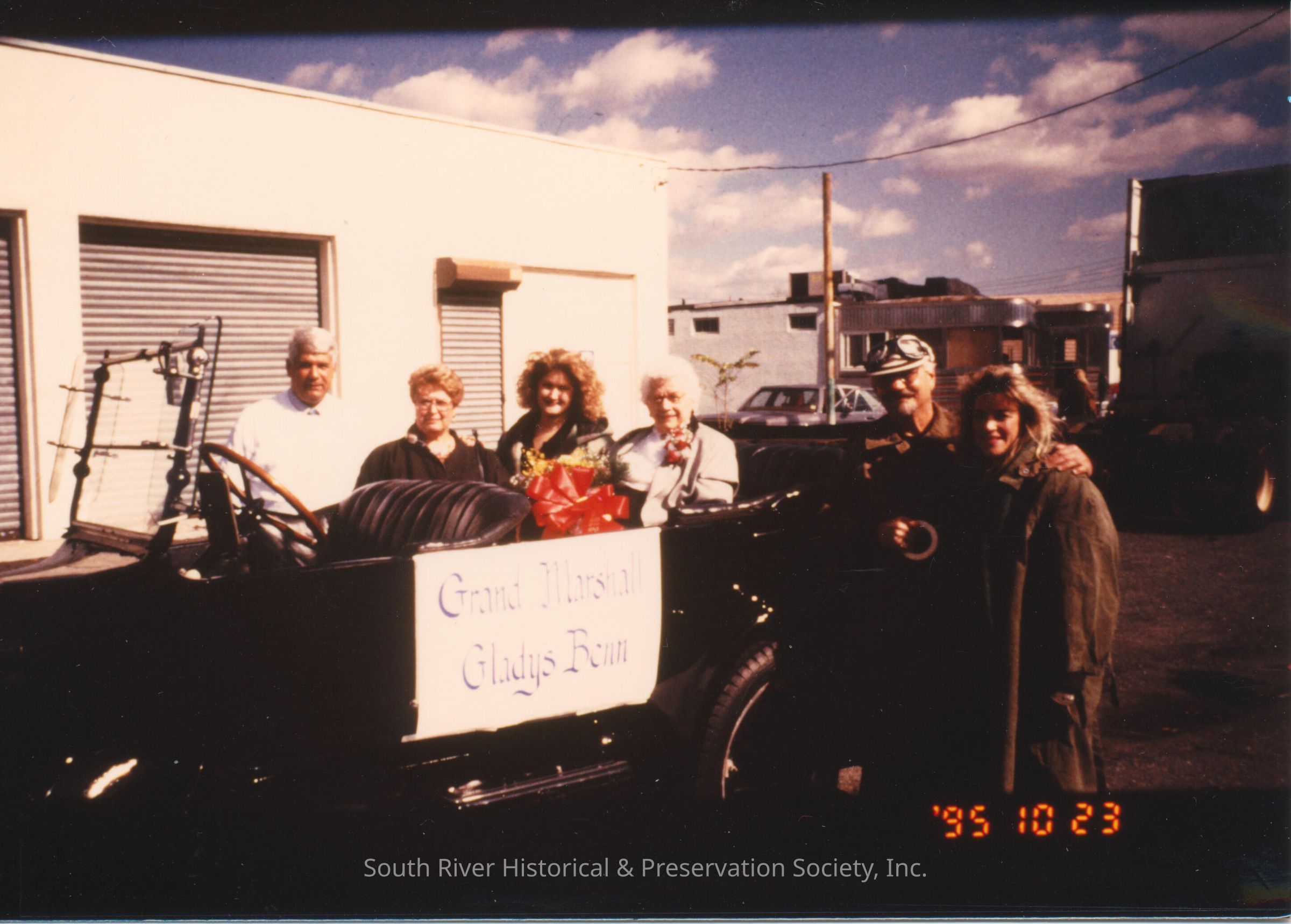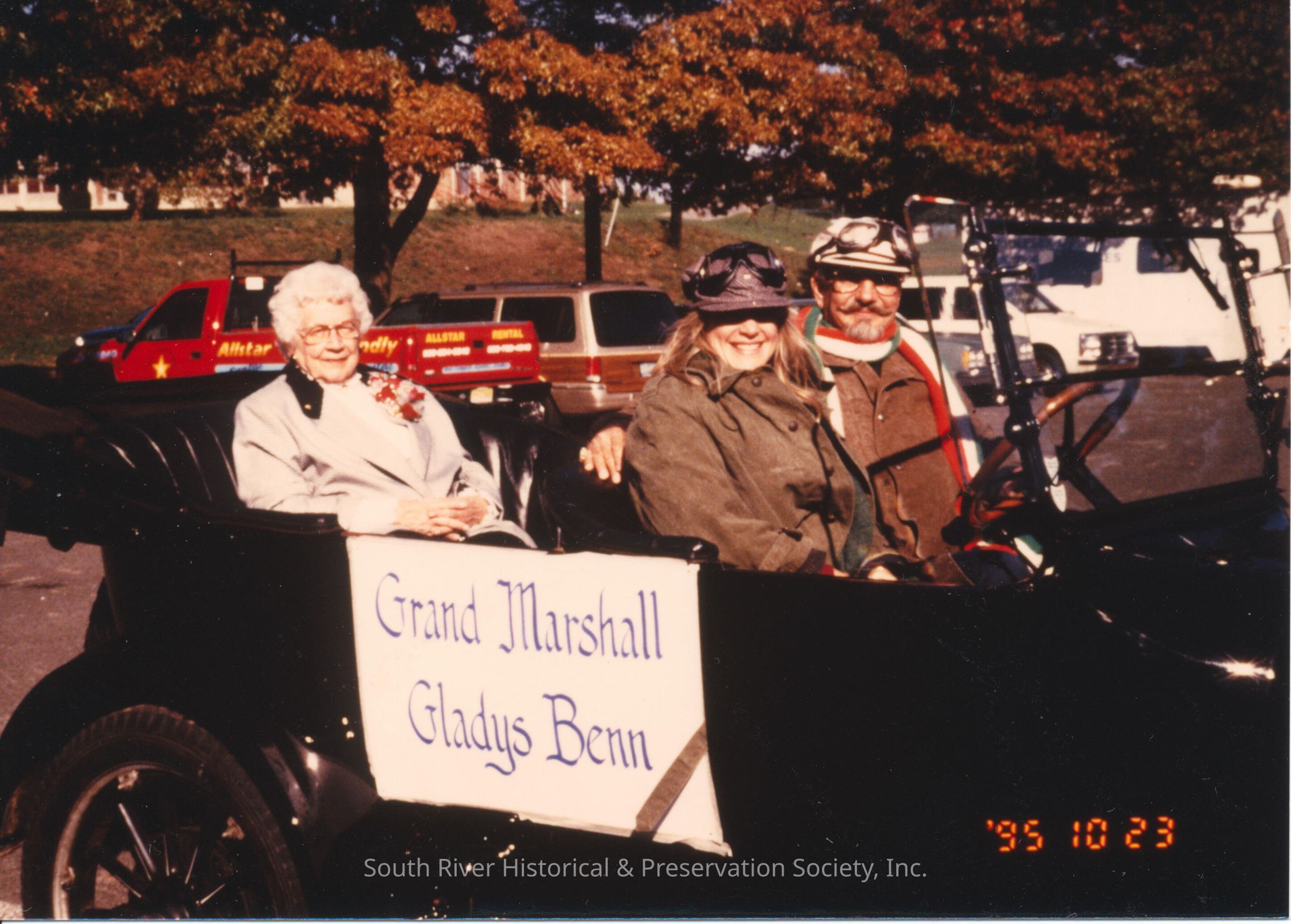 Jonathan and Jennifer Grimm carrying the banner at the start of the parade for South River's 275th anniversary.