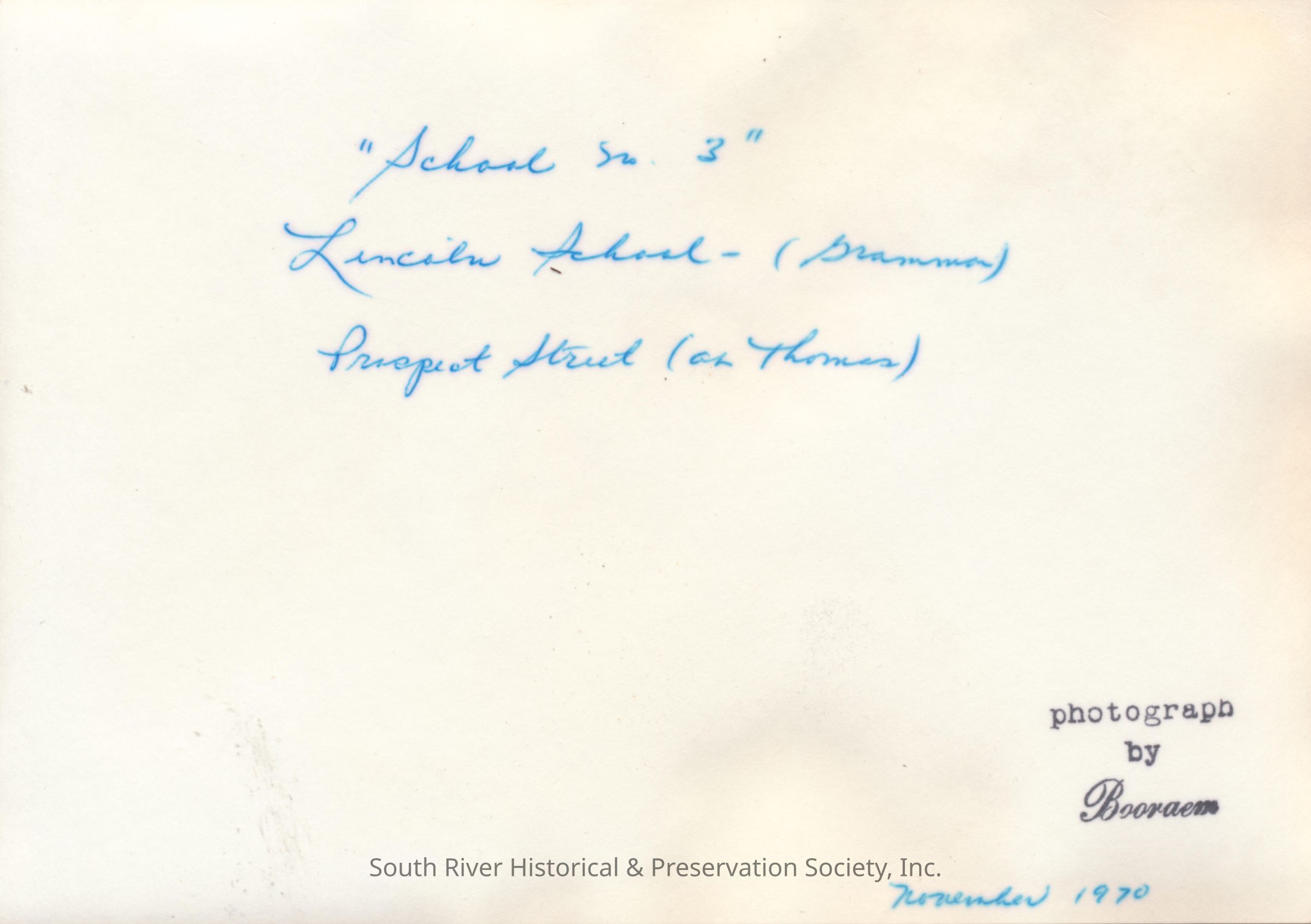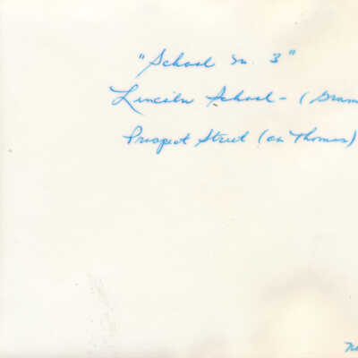 A note handwritten on the back in blue ink reads "November 1970; "School No. 3," Lincoln School (Grammar), Prospect Street (at Thomas)."