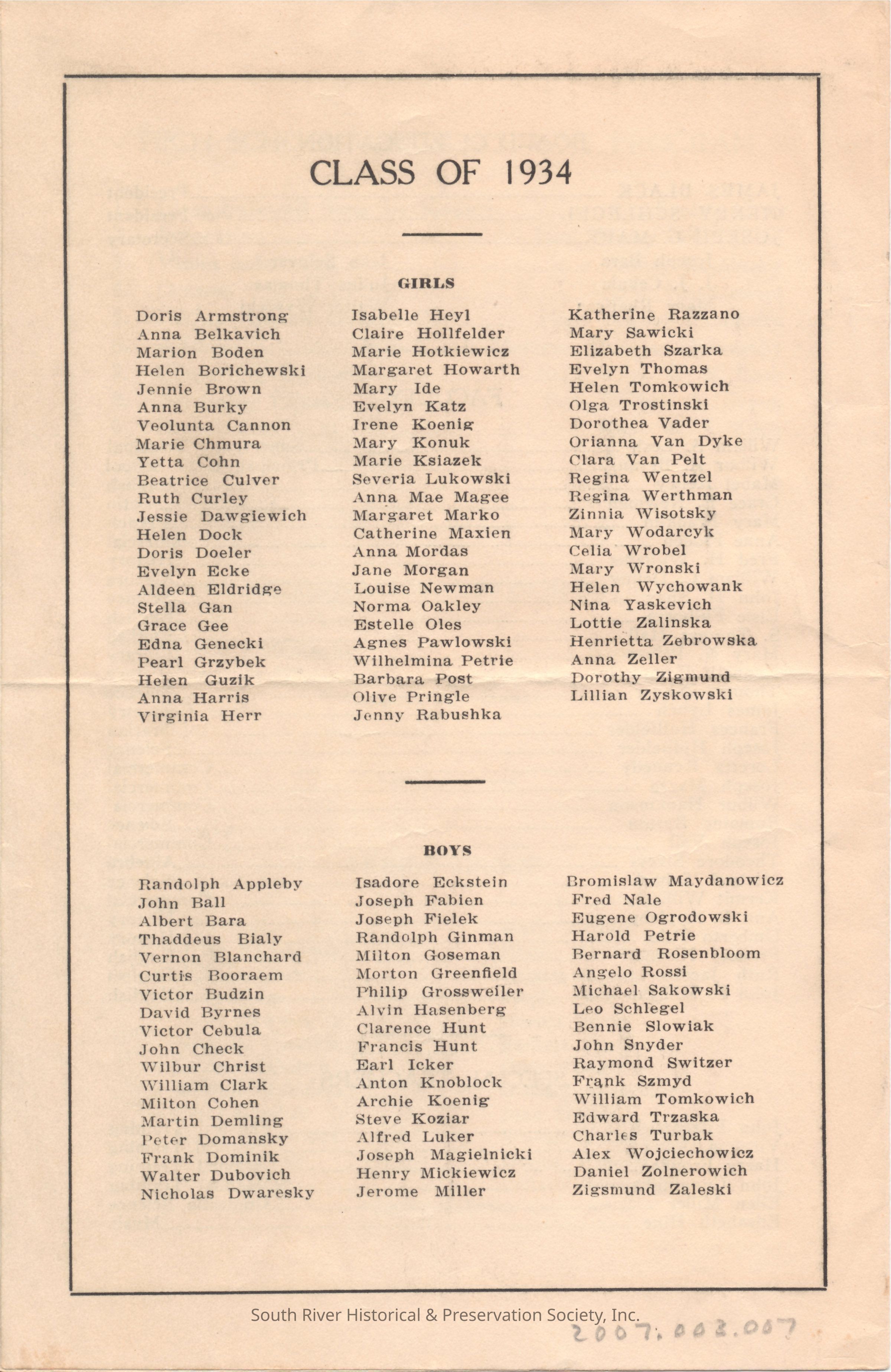 1934 Annual Commencement, South River High SchoolEntry/Object ID