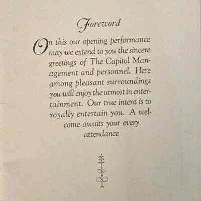 Capitol Theatre Inaugural Presentation, Souvenir ProgramEntry/Object ID