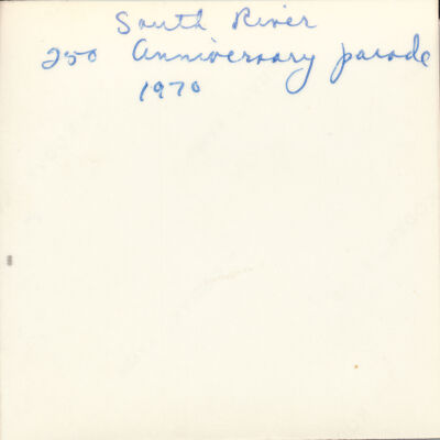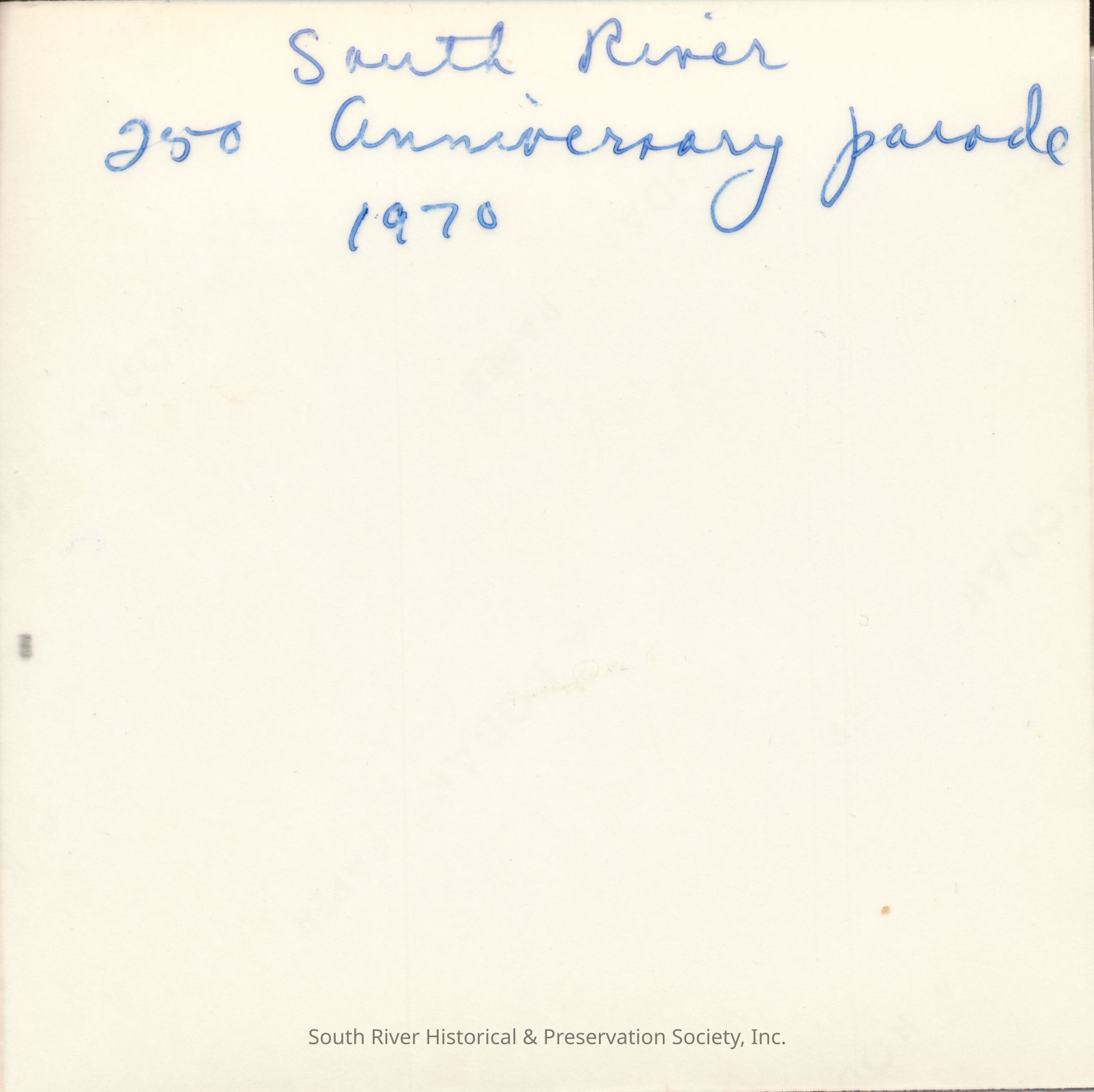 The back of the photo has a note handwritten in blue ink that reads, "South River, 250 Anniversary Parade, 1970."
