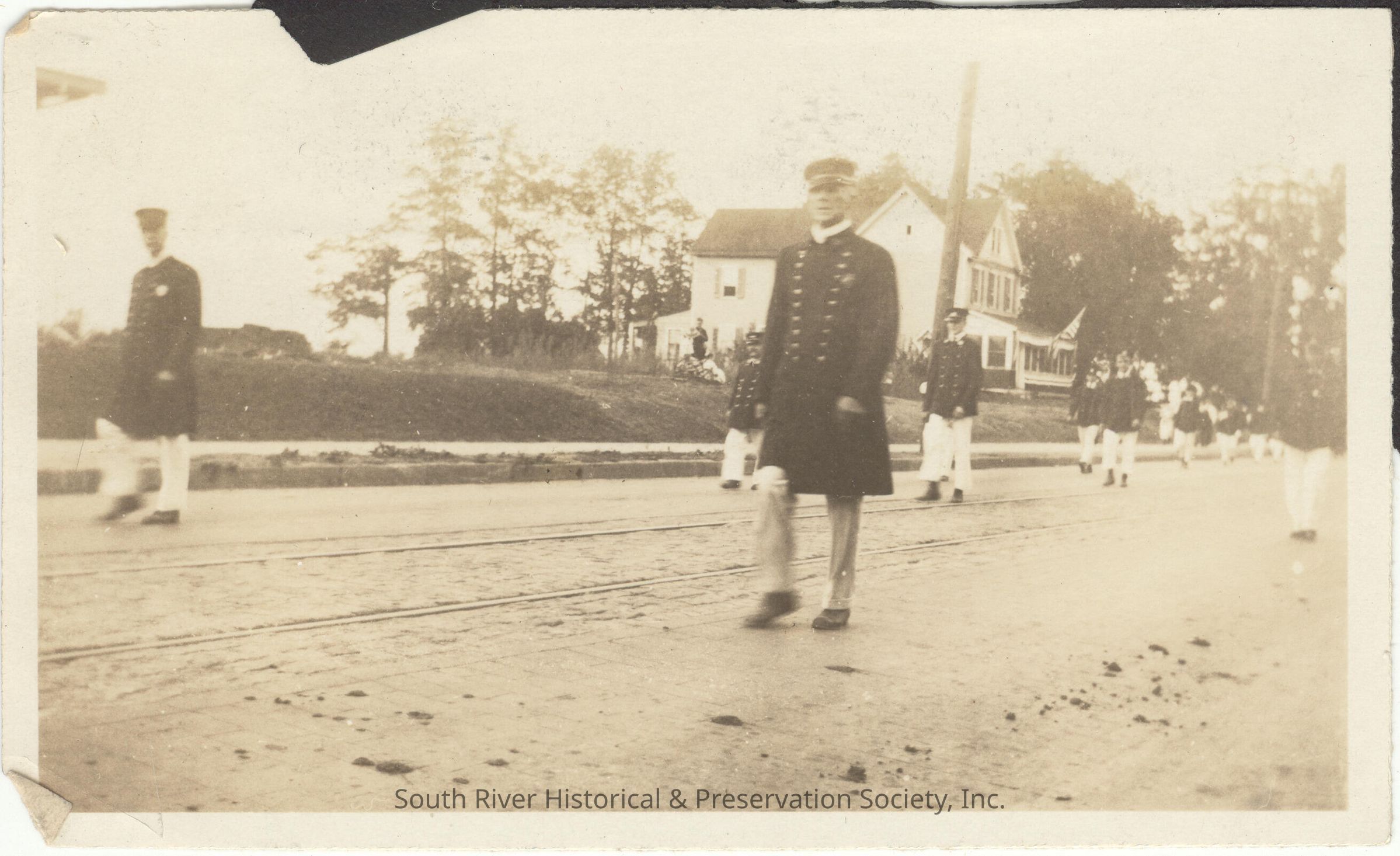 Photograph of South River firemen during the parade for the celebration of South River's 200th anniversary, September 1920. Scanned digital copy of print photograph.