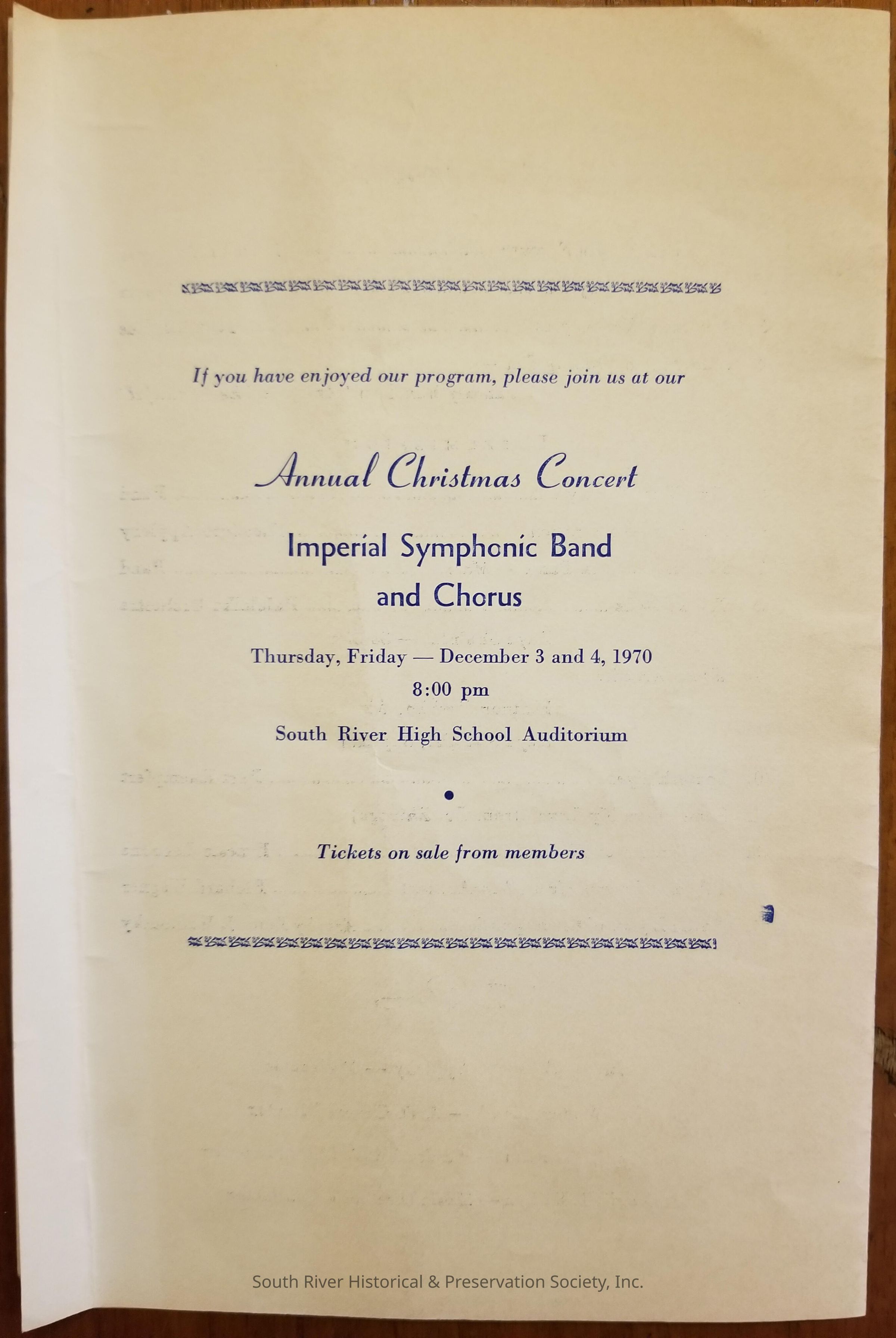 The back cover has an advertisement for the Annual Christmas Concert, Imperial Symphonic Band and Chorus, to be held on December 3 and 4, 1970.