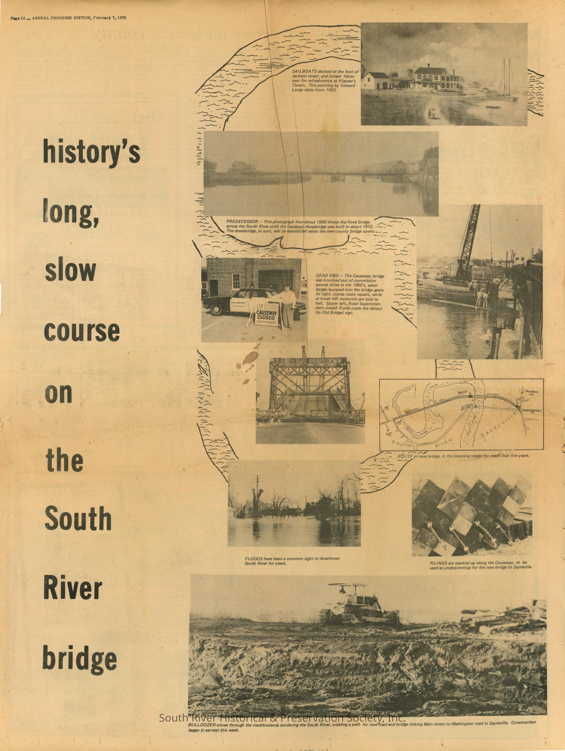 Newspaper page featuring images related to the history of the bridge over the South River between South River and Sayreville.