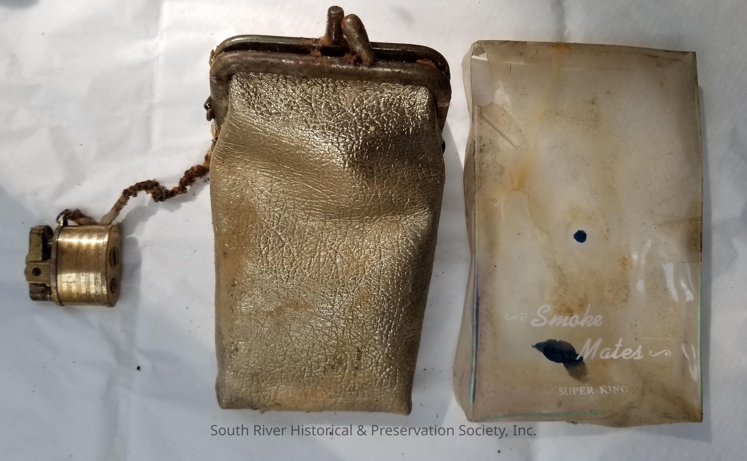 Accompanied by the plastic cover from the original box for the cigarette case and lighter. The cover reads "Smoke Mates, Super King." Plastic cover was stained and warped and was discarded due to condition.Acquisition