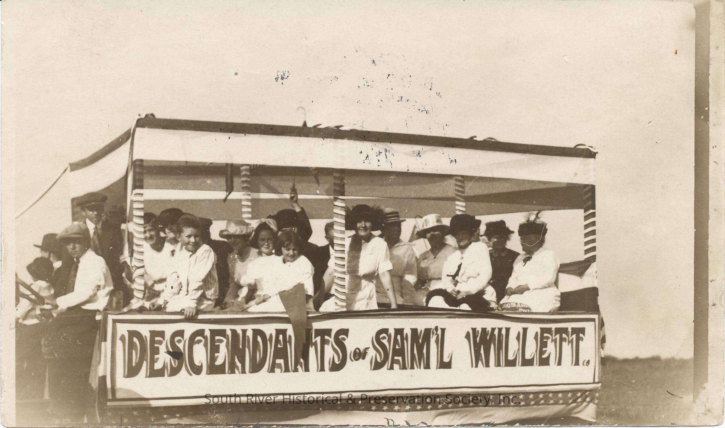 From Selover's "History of South River" (page 429-430) - "...a group of local descendants riding in a decorated dray. Among the descendants are: Mrs. Daniel June, George and Mary June; William Serviss, William, Jr., Miss Nancy Serviss; Mrs. Agnes Van Deventer, Marjorie, Bradley, Alice and Julia Van Deventer; Charles Booraem, Helen, Willett, Pierson, Gladys and Curtis Booraem; Raymond Booraem, Raymond, Jr., and Warren K. Booraem; Mrs. Mary A. Serviss; Ira and Nina Serviss; Miss Madeline Martin, Miss Clara Martin, Miss Muriel Holmes, Captain Isaac Martin, Captain Elmer Martin, Miss Sarah Martin Brown, Mrs. William Kline, Bray D. Martin, Miss Ella J. Peterson, Mrs. Charles Herrmann, Jonathan Martin, Miss Emma Martin, Julius J. Kleine, Mrs. Caroline Kleine and Mrs. Mary E. Brown."Note Type