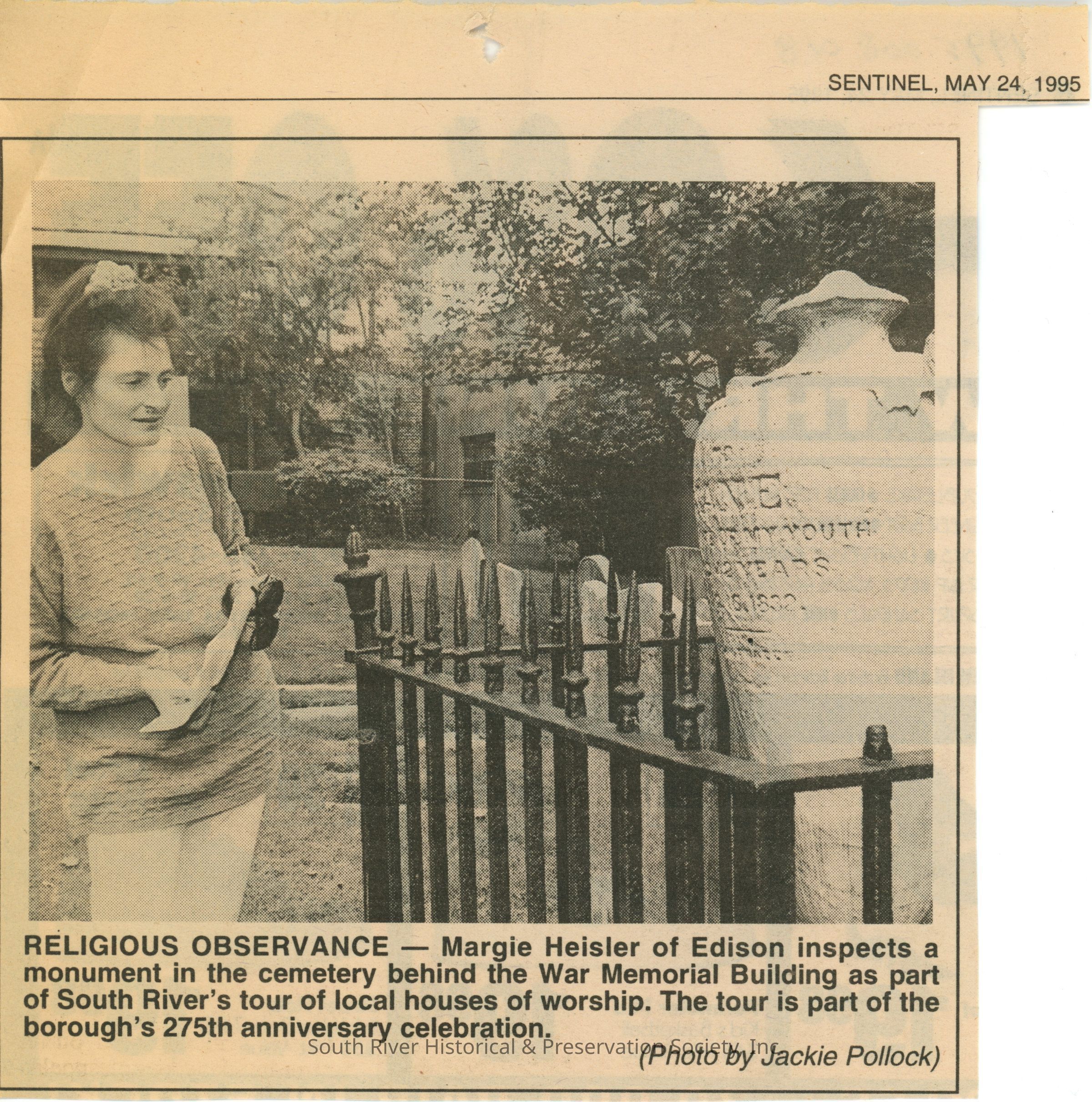 Newspaper clipping describing the upcoming church tour conducted as part of the 275th anniversary celebration. Home News, May 9, 1995.Date(s) of Creation