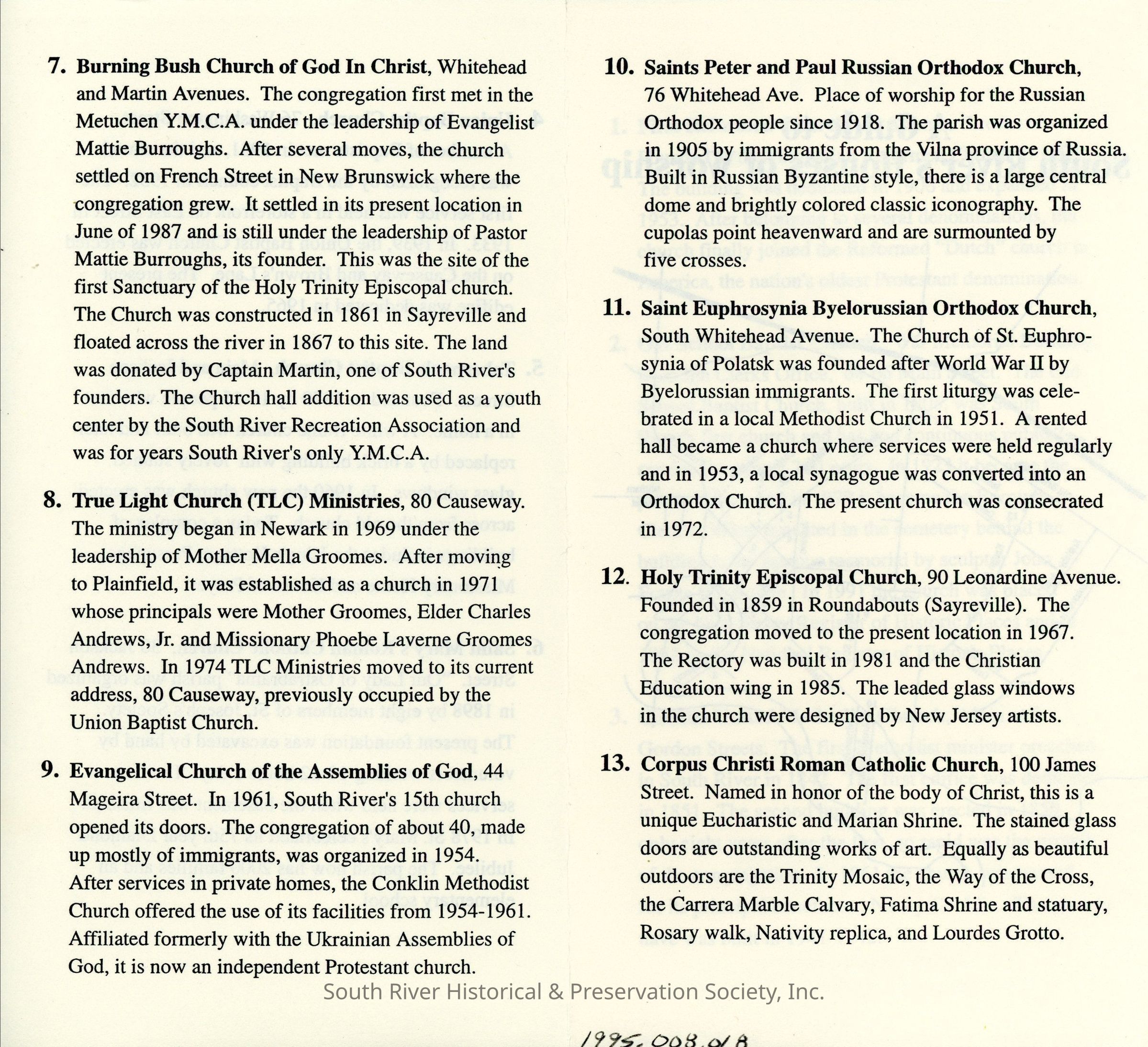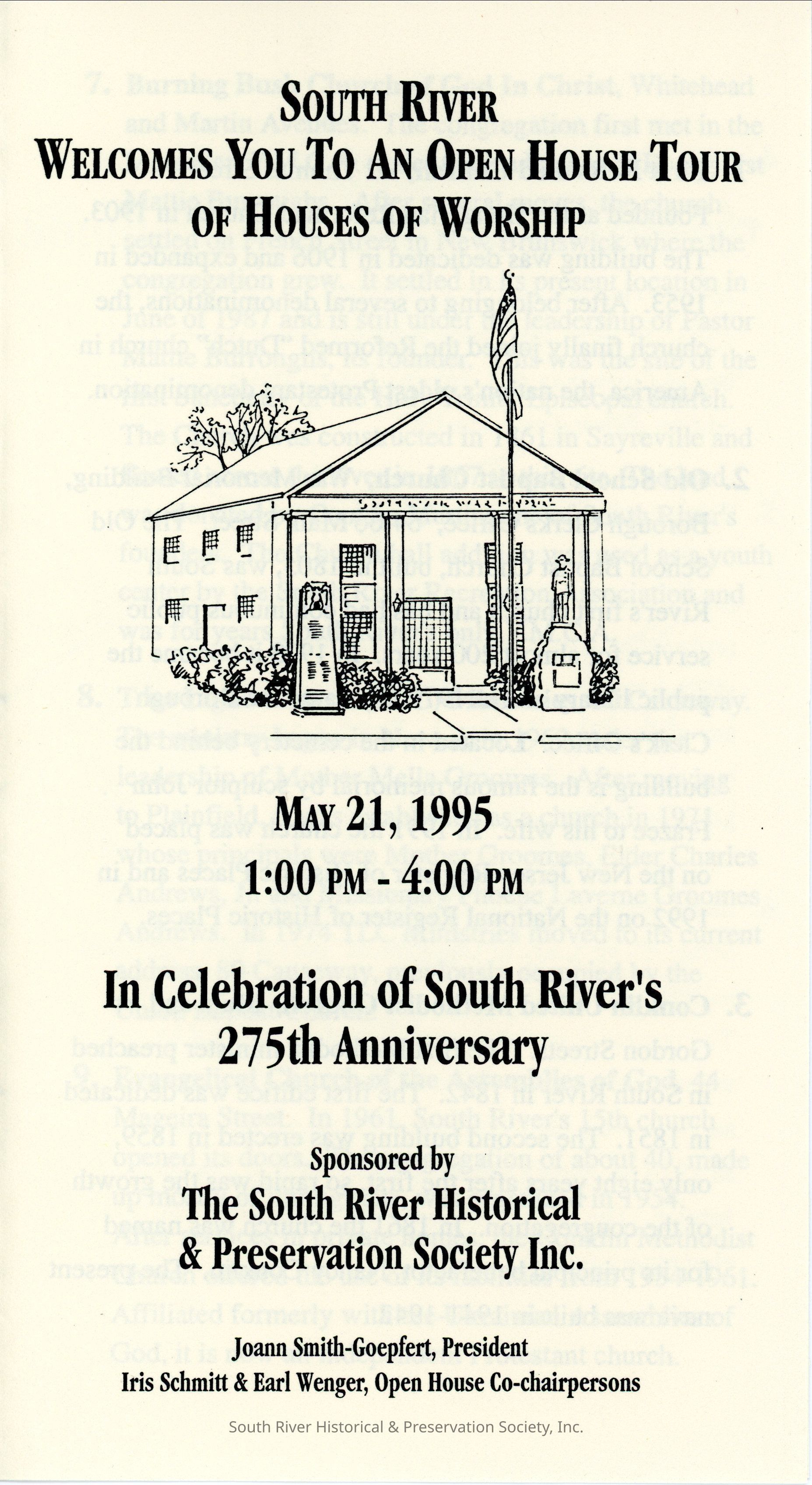 South River Welcomes You to an Open House Tour of Houses of Worship, May 21, 1995Description
