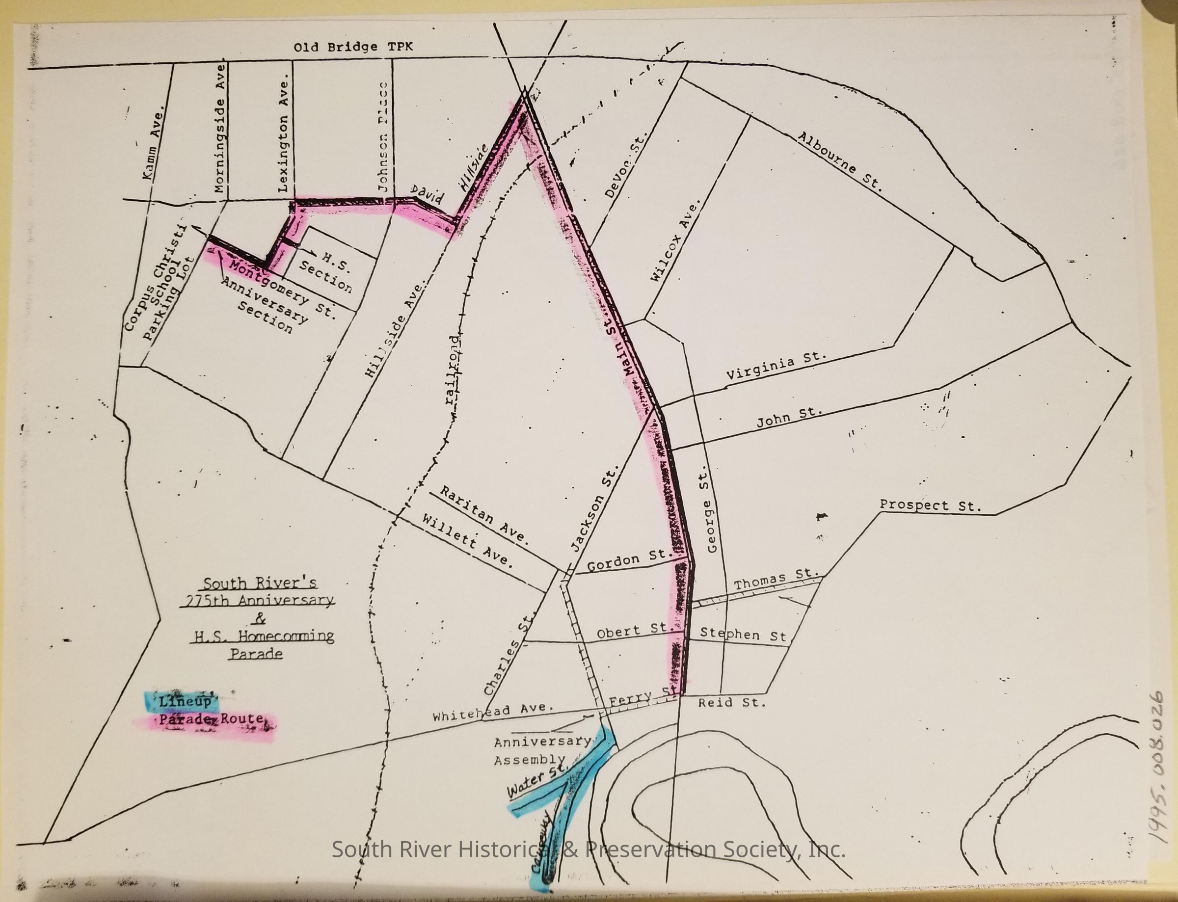 Folder containing information on the parade for the celebration of South River's 275th anniversary in 1995.