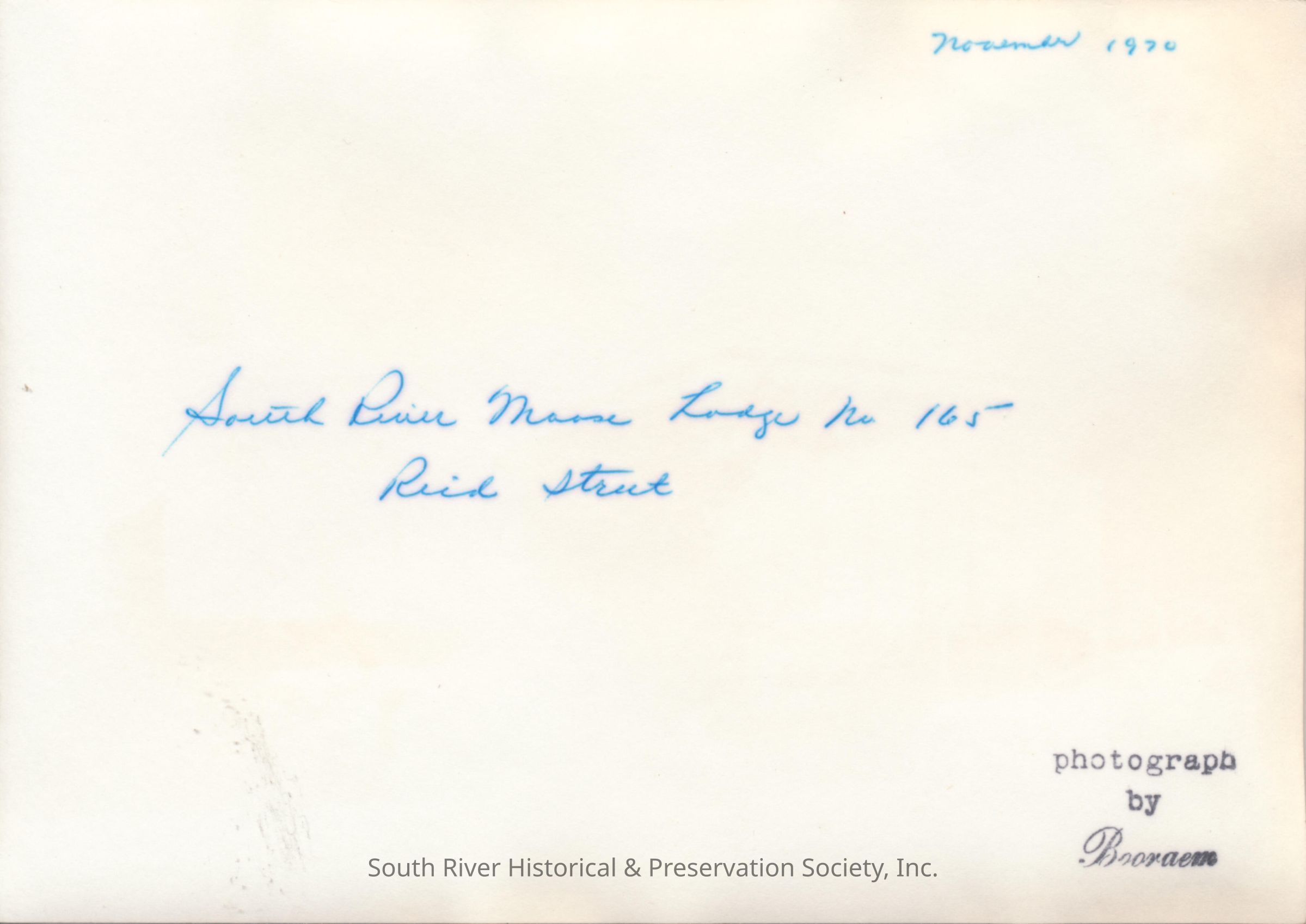 A note handwritten on the back in blue ink reads "November 1970; South River Moose Lodge No. 165, Reid Street."